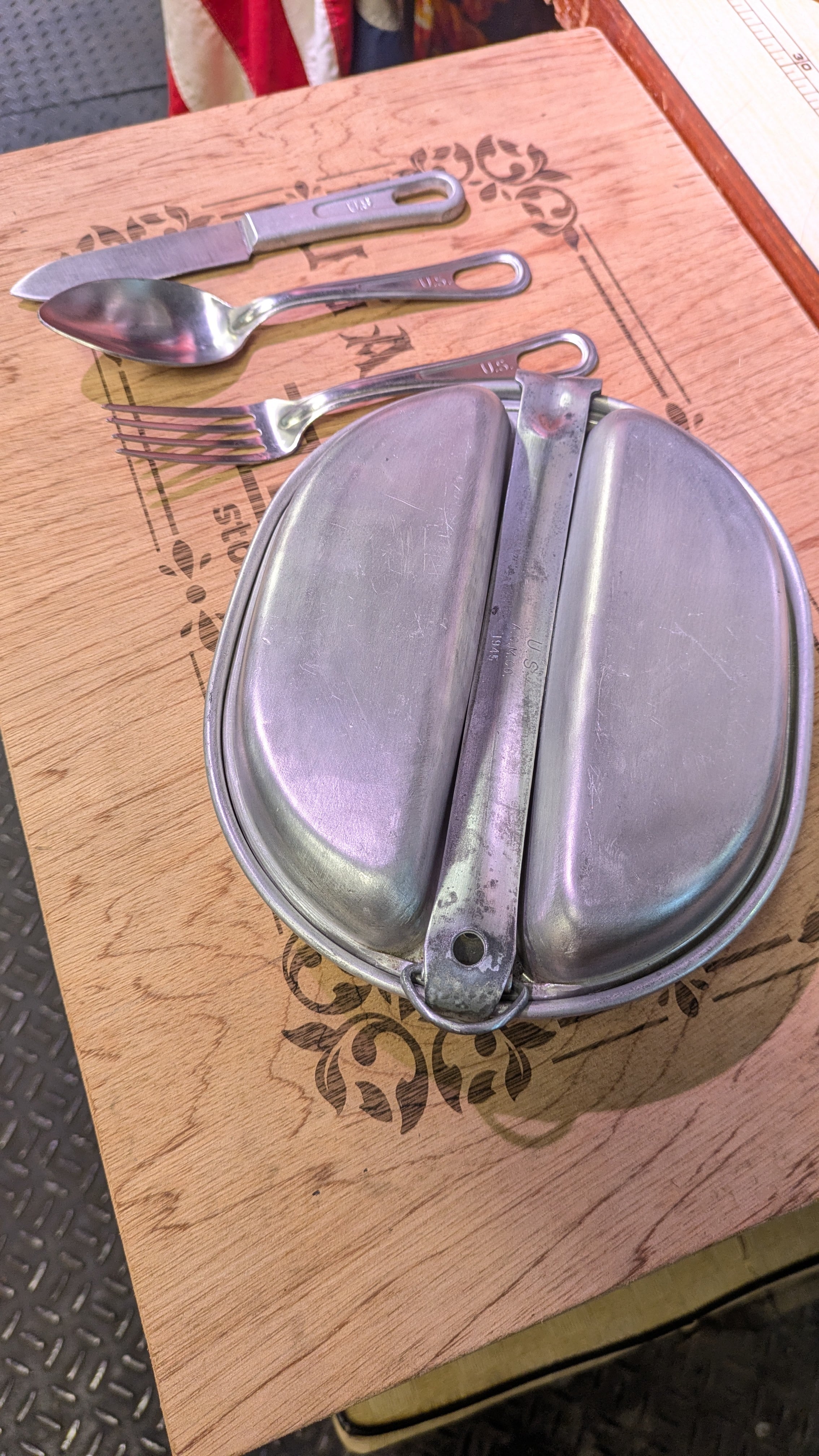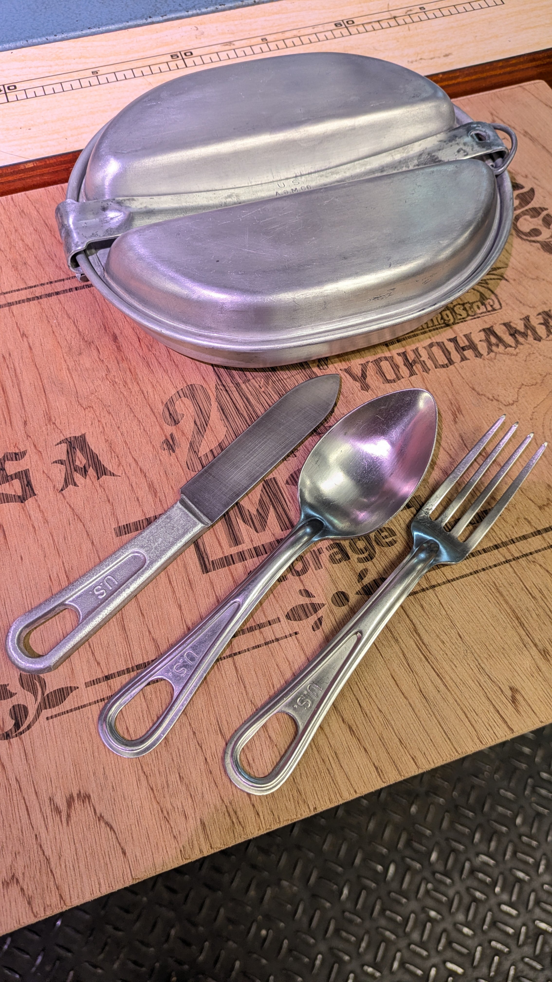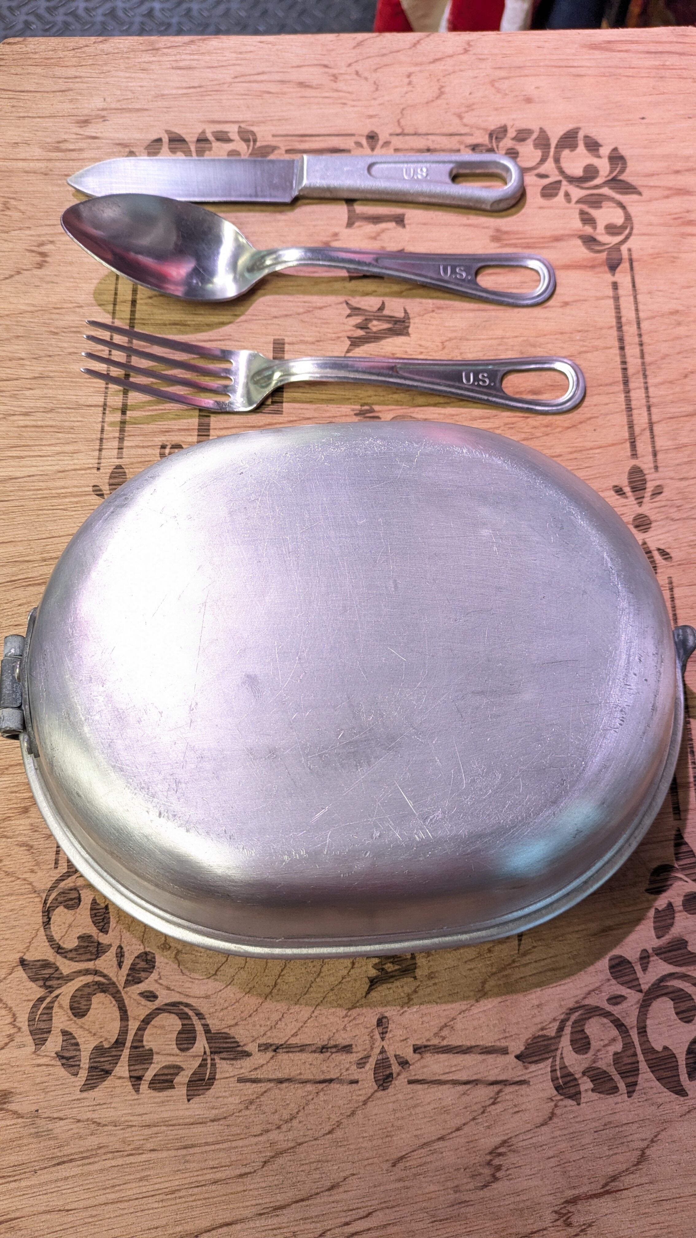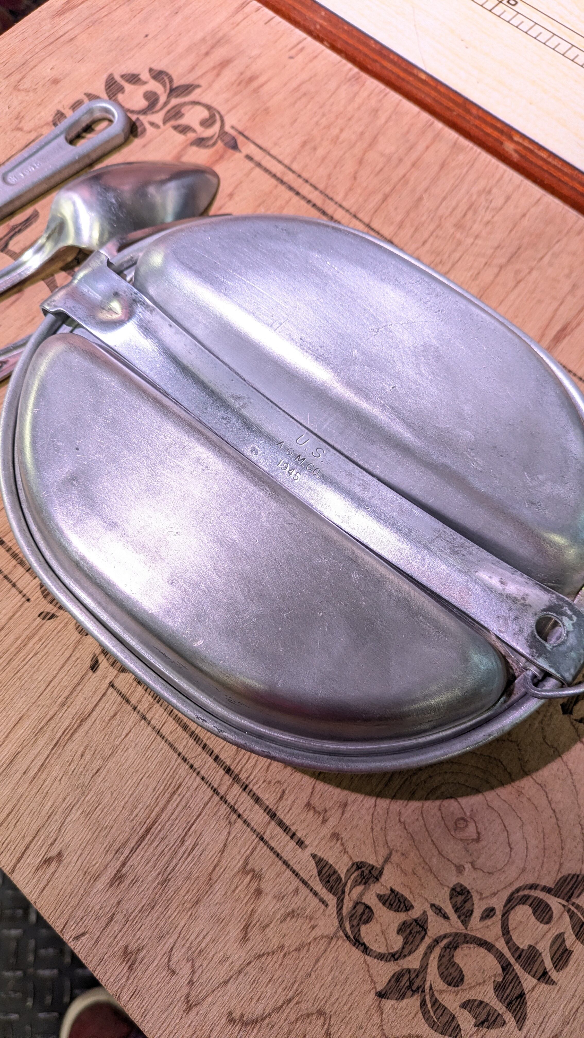 1945 Vintage US A.G.M Co military messcan Cooker&Cutlery US レア ビンテージ ミリタリー メス缶 メスキット クッカー カトラリーセット 缶 軍物 米軍 ソロキャンプ 野営
