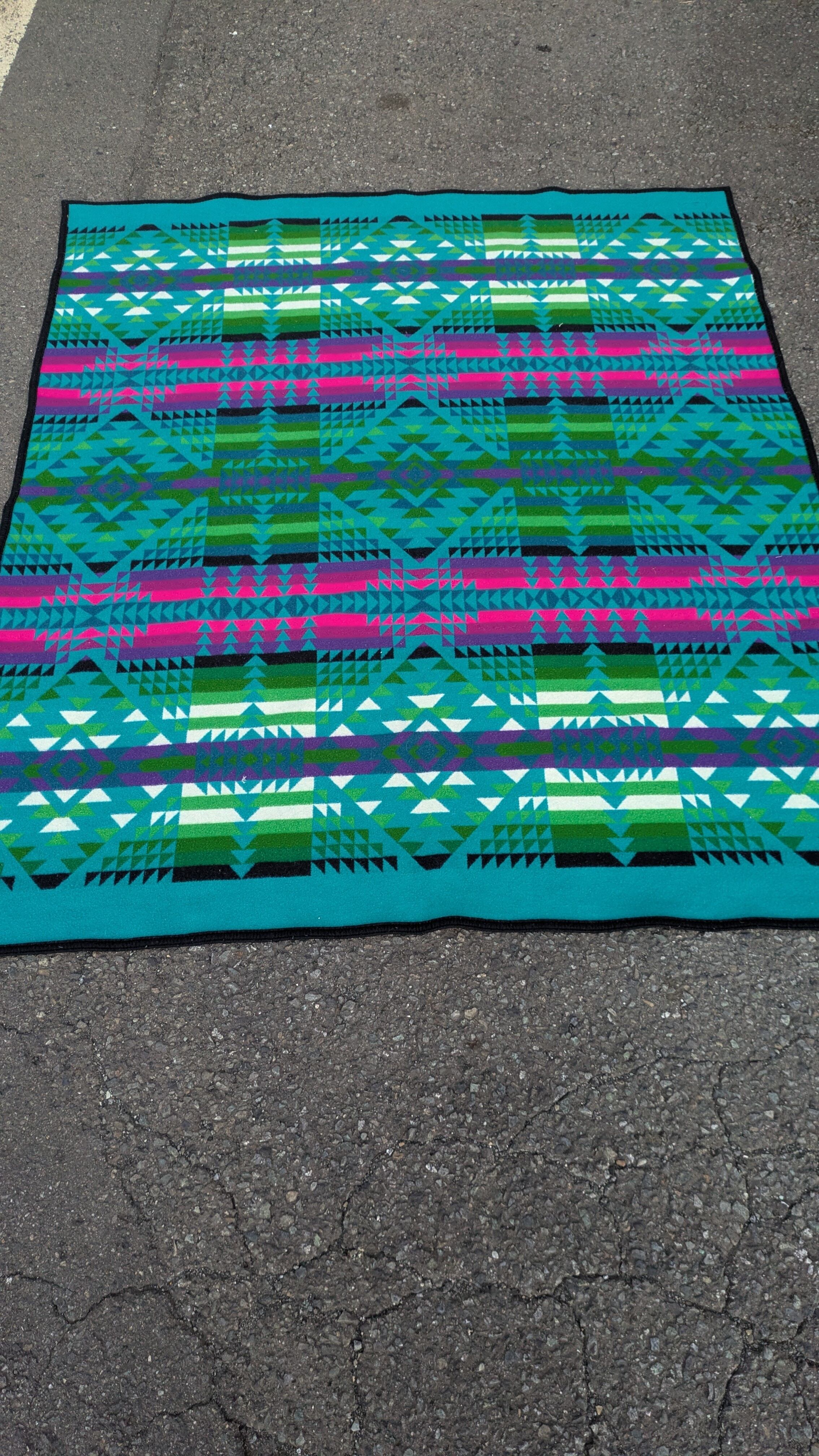 Vintage Pendleton Native Blanket Wool 192x160cm ビンテージ ペンドルトン ウールブランケット ネイティブ柄 キャンプラグ ブランケット