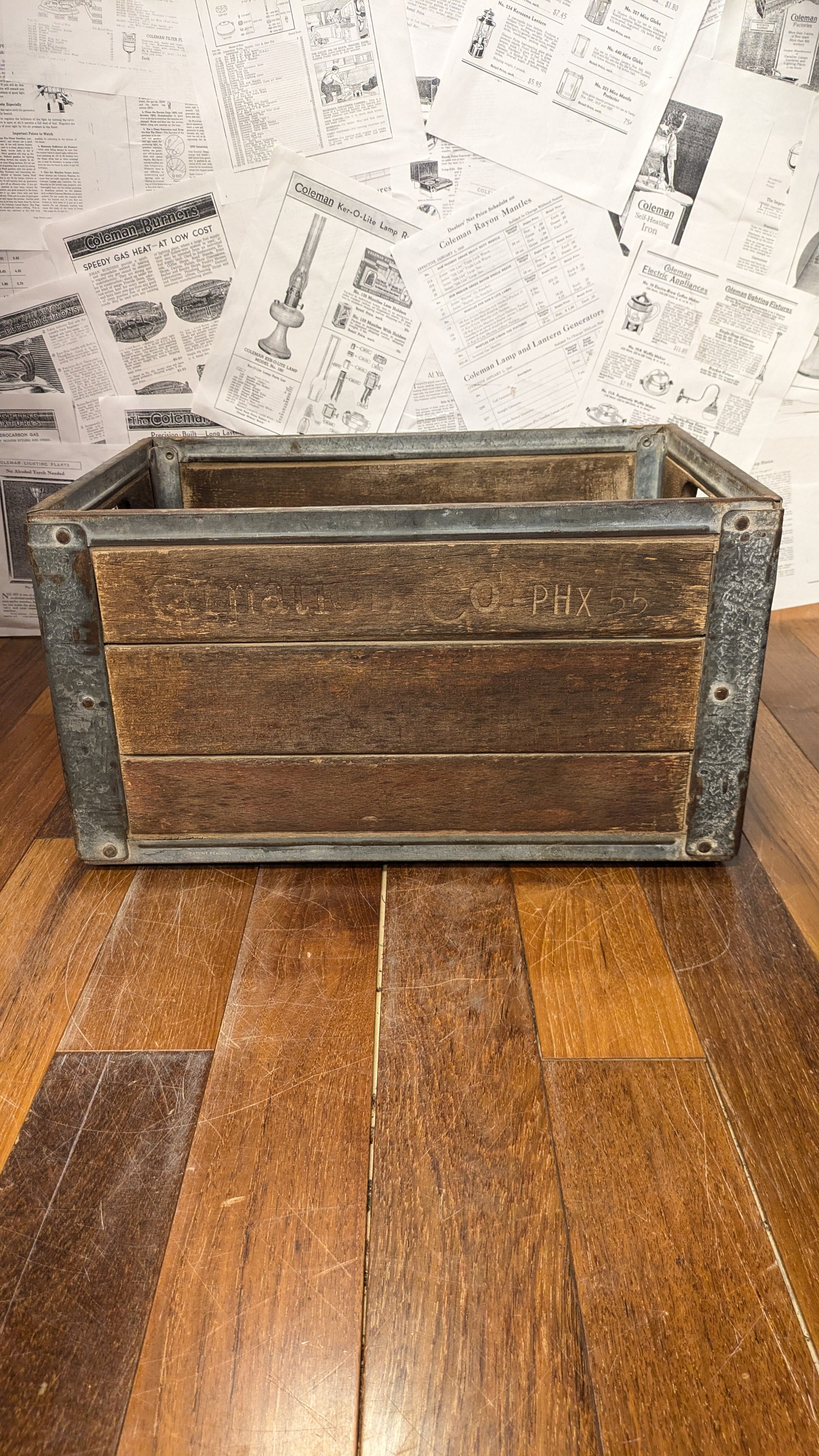 やや擦れたブランドロゴや木の質感、雰囲気など秀逸な木箱です。
