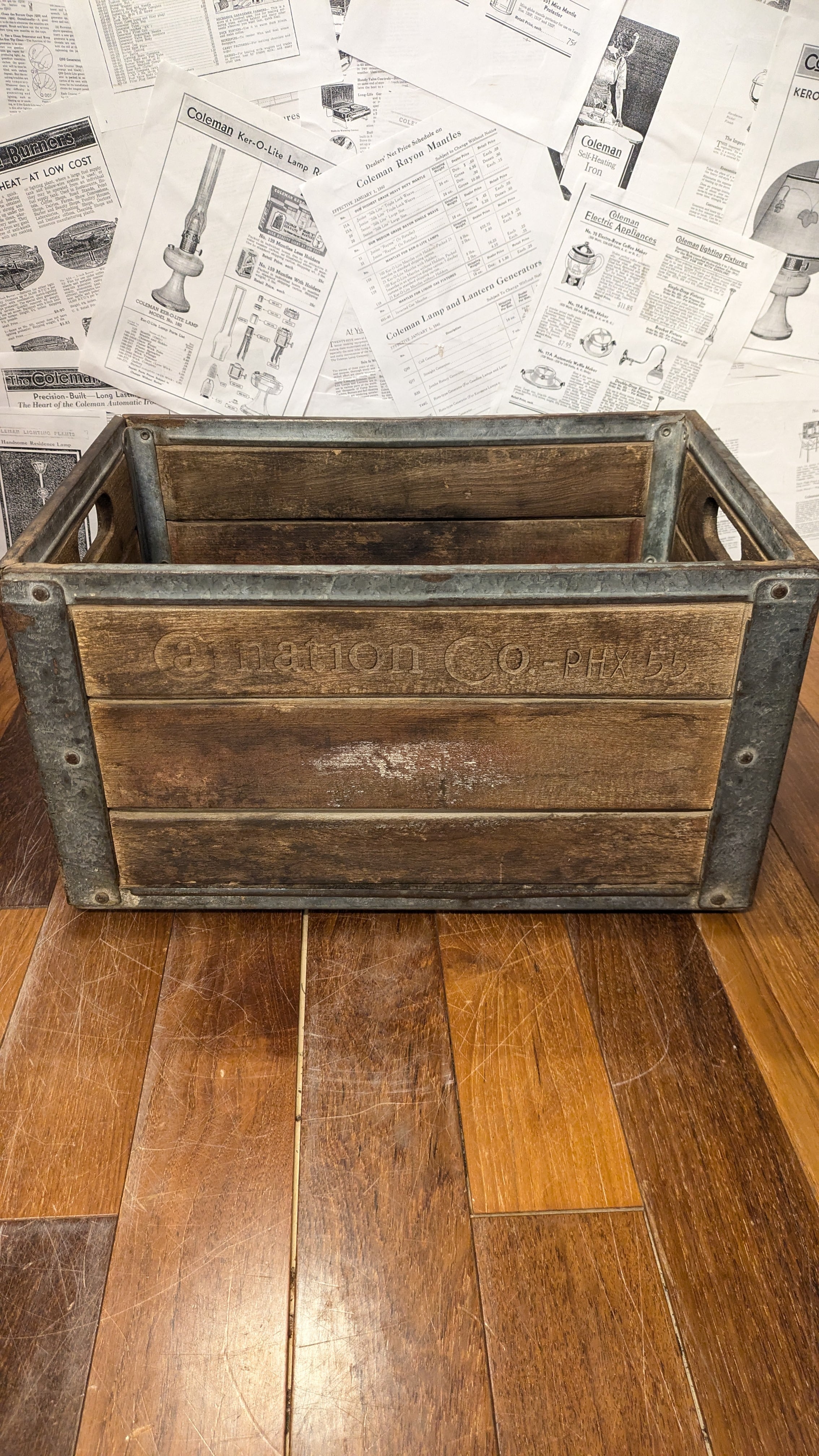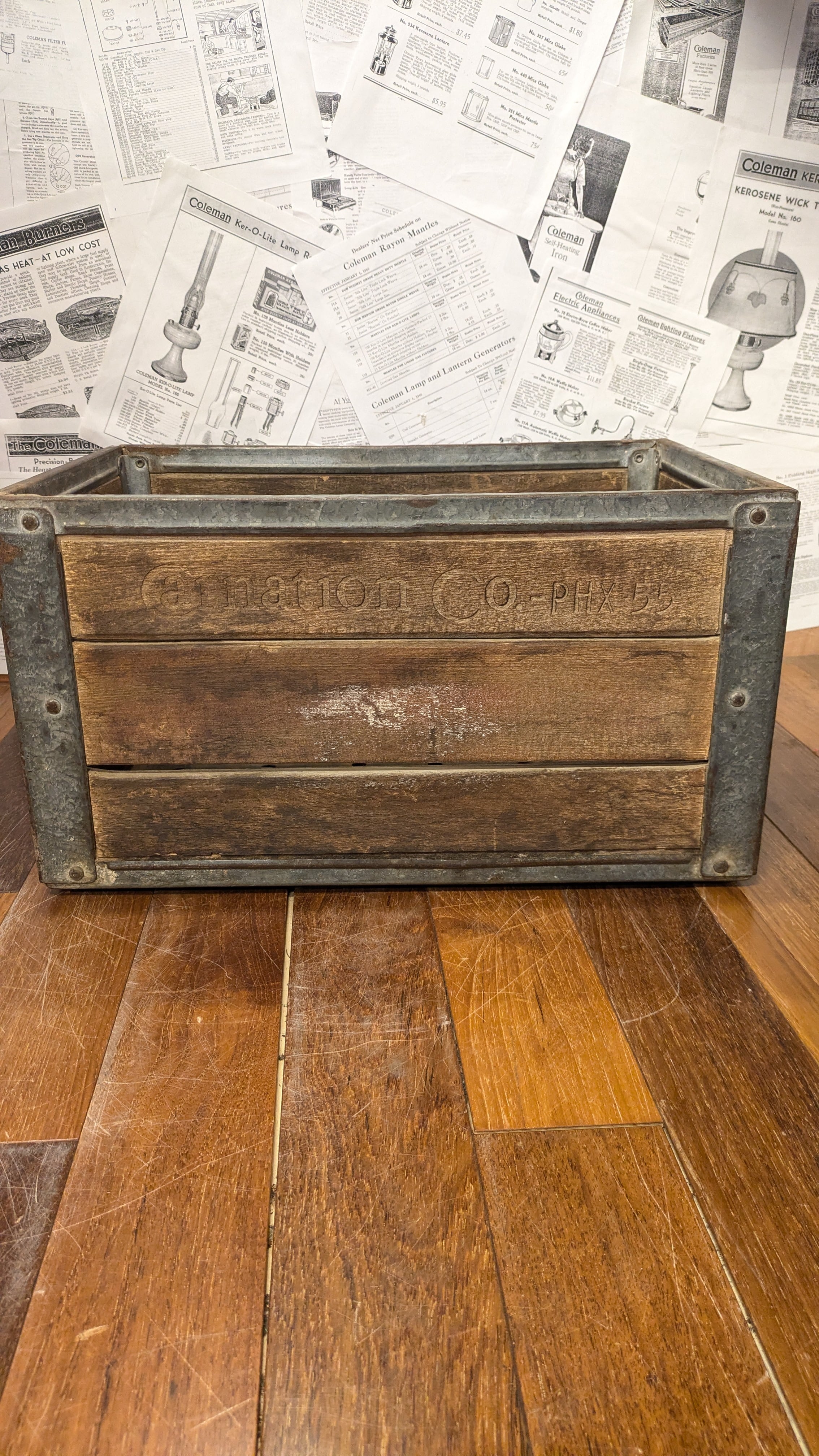 1950's Vintage Carnation Crate MilkCrate WoodBox StorageBox Antique Container ビンテージ カーネーション ミルククレート ウッドボックス 木箱 収納ボックス ビンテージキャンプ