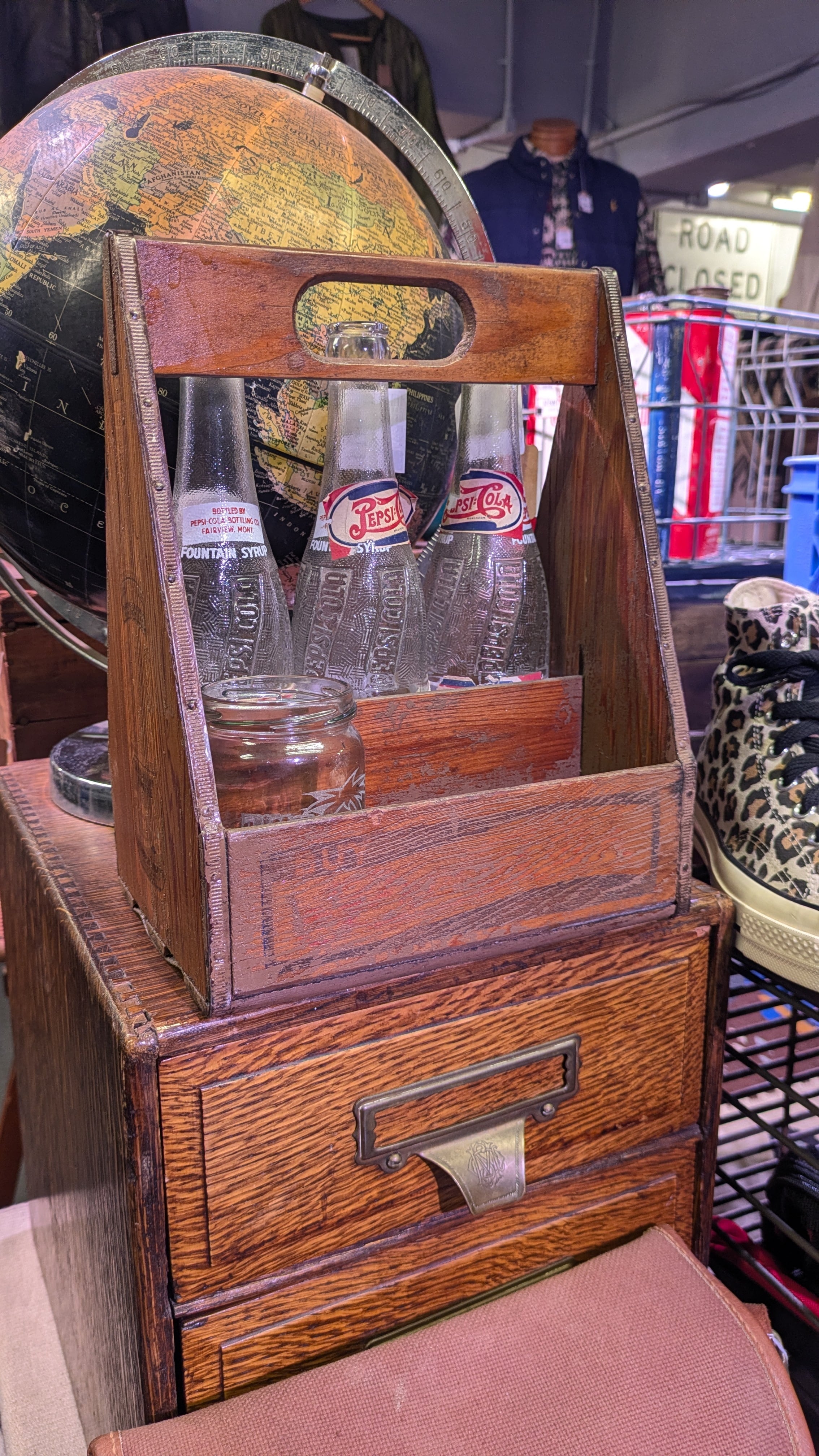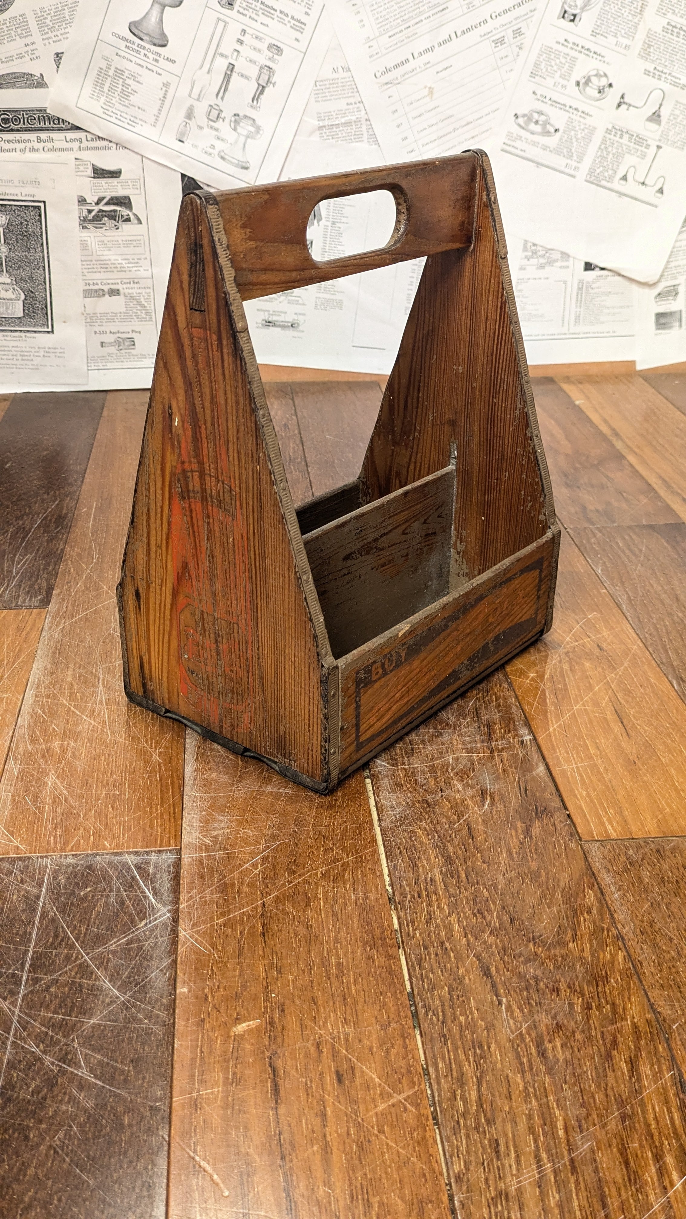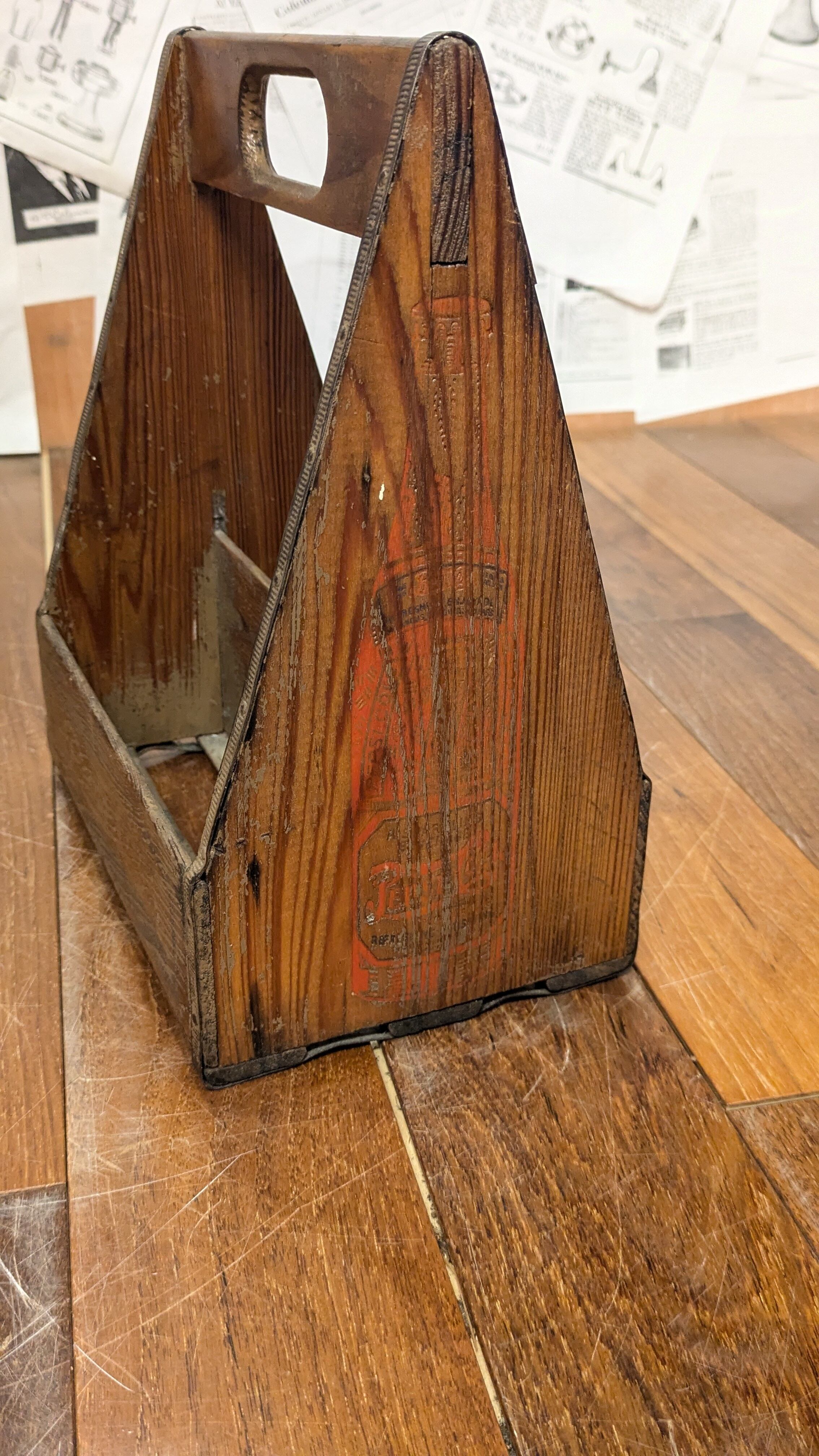 Vintage PEPSI-COLA BottleHolder WOOD Basket Case ビンテージ ペプシ コーラ 木製 ボトルホルダー スパイスケース キャンプギア USA アメリカ雑貨 アンティーク