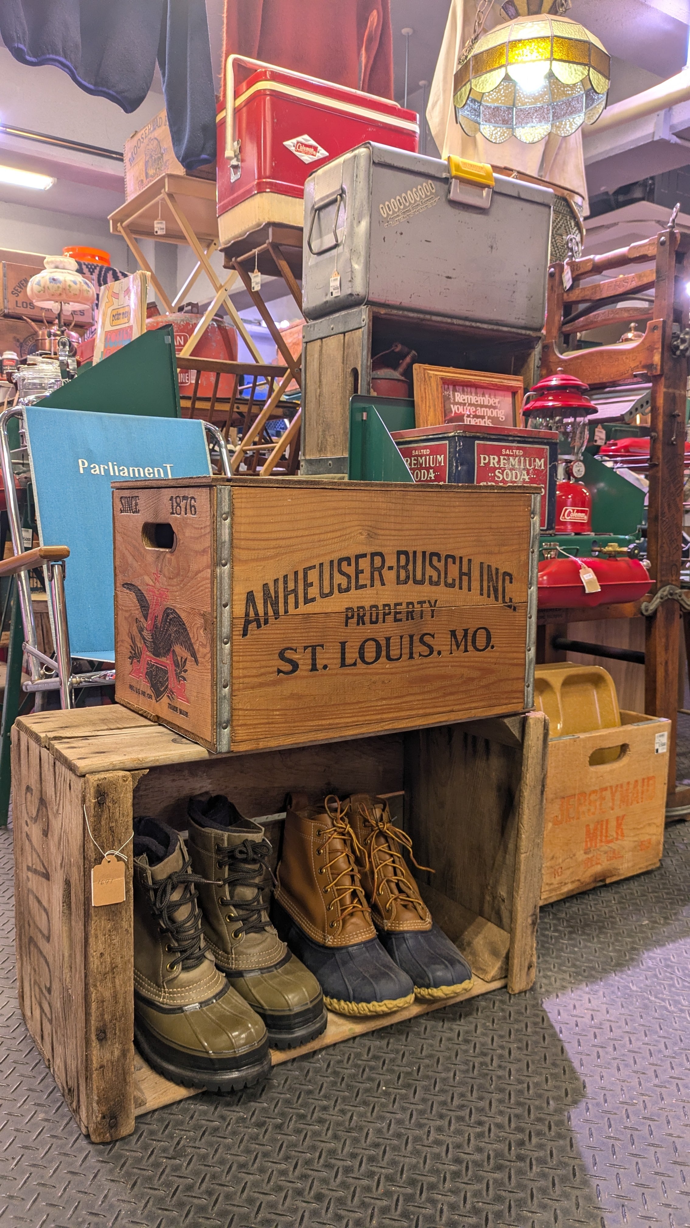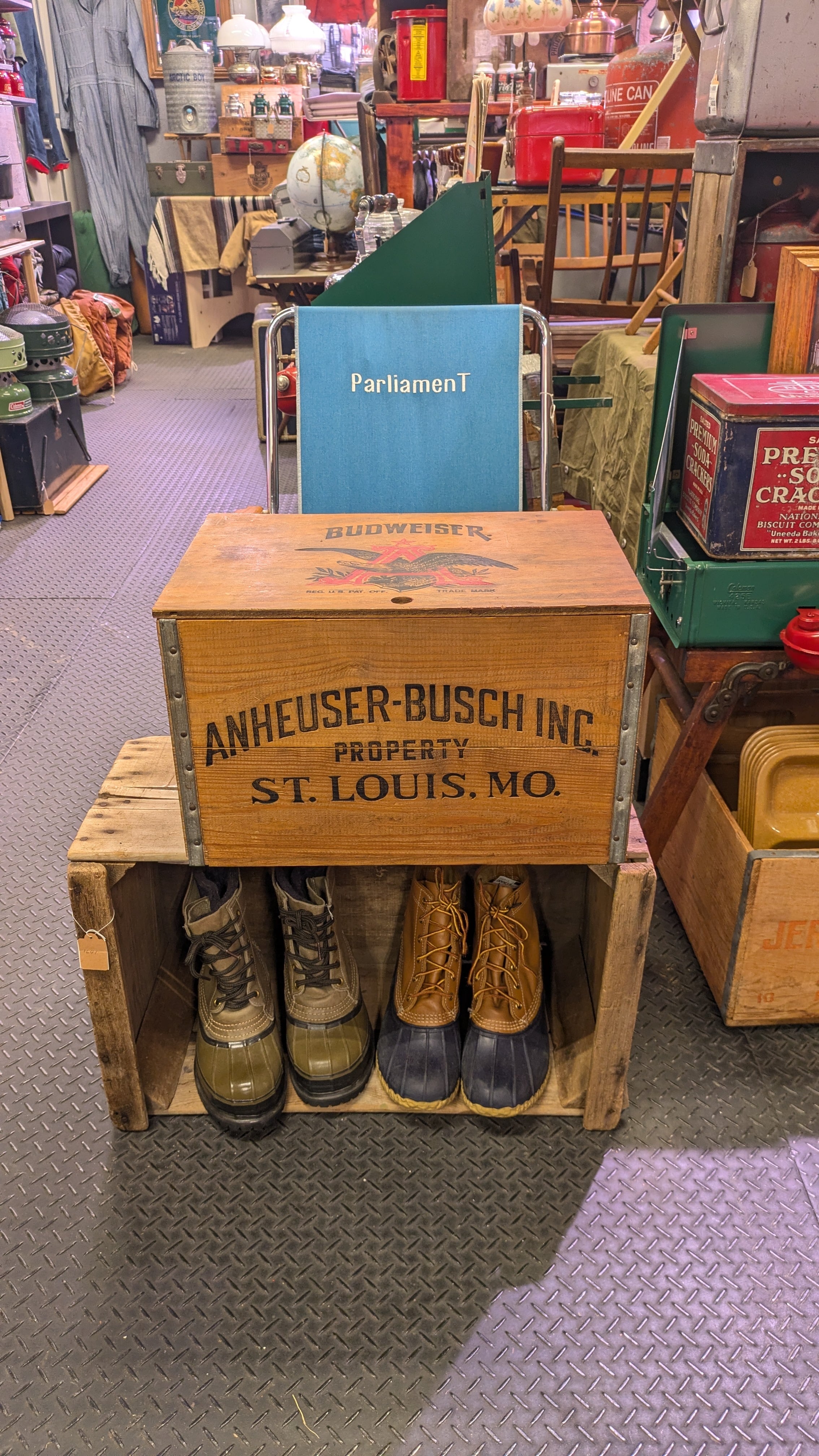 Mint! Vintage ANHEUSER-BUSCH BudWiser WoodBox Crate StorageBox Antique Container ビンテージ バドワイザー ウッドボックス 木箱 収納ボックス クレート BottleCap