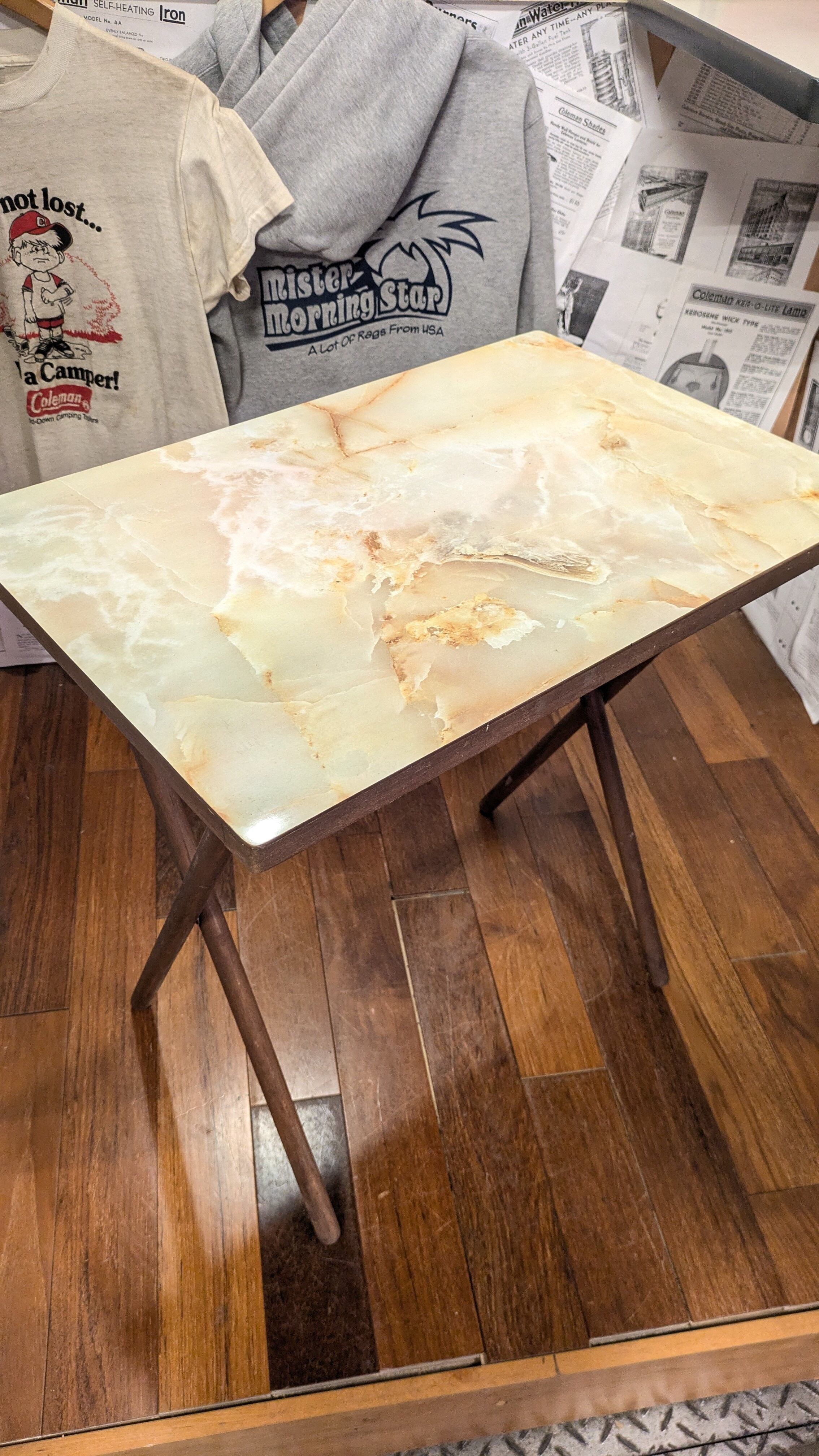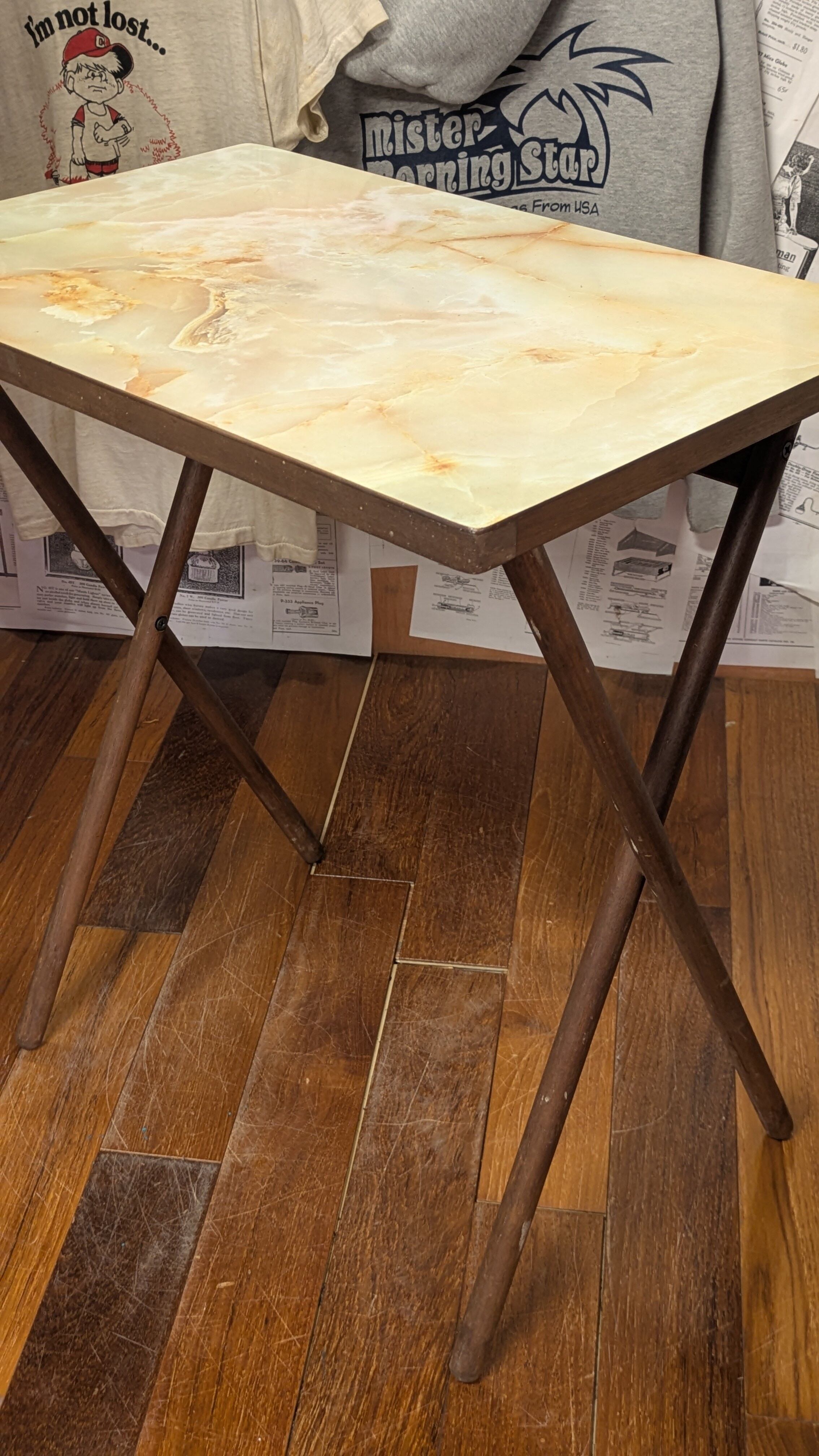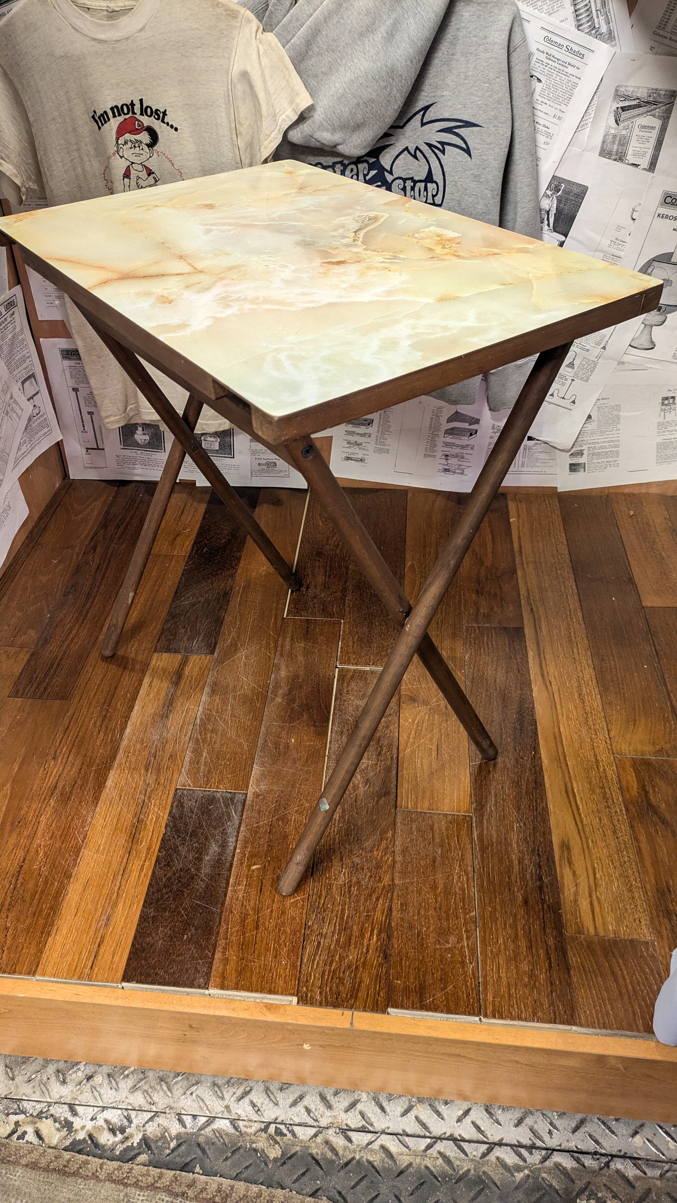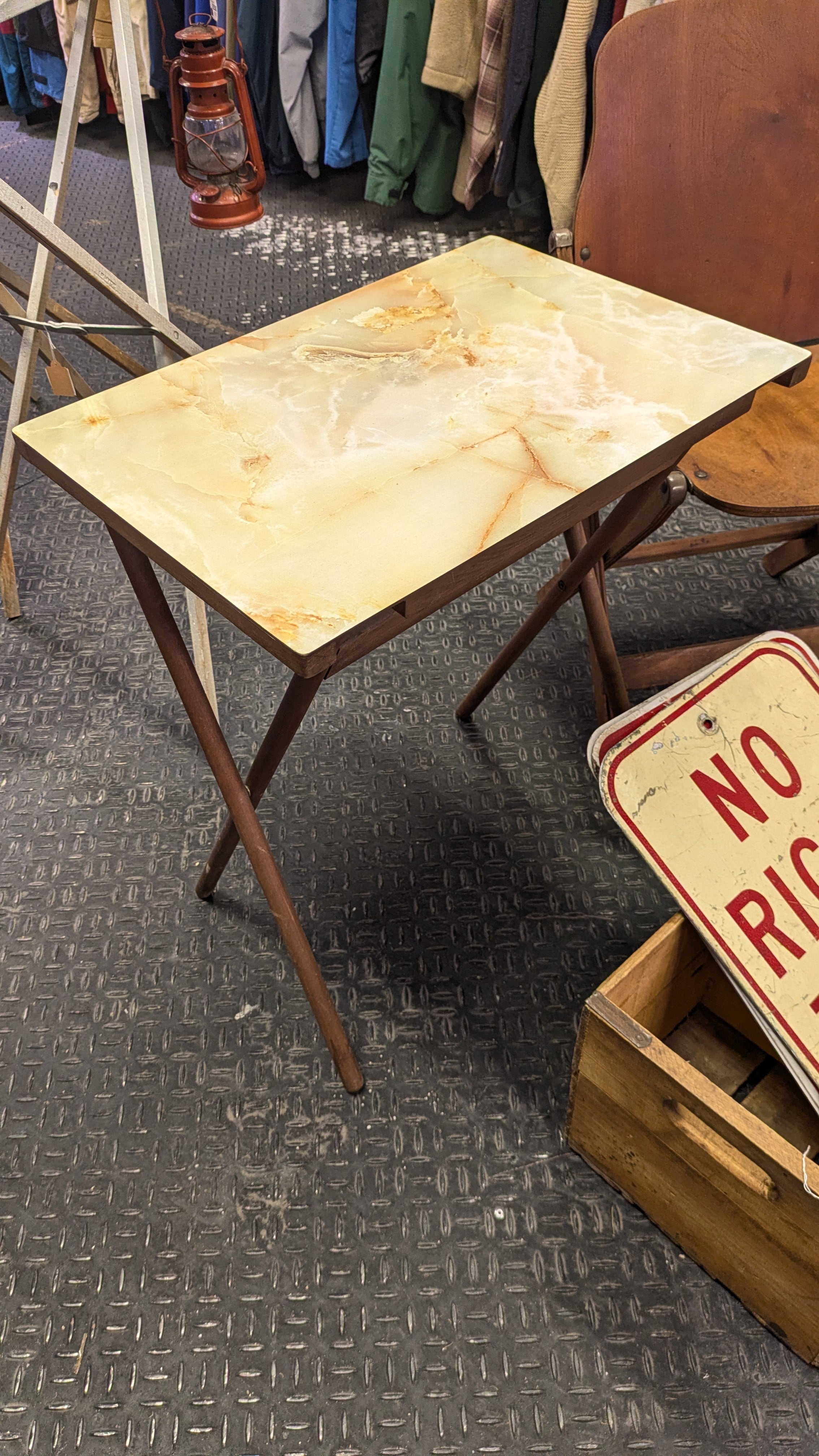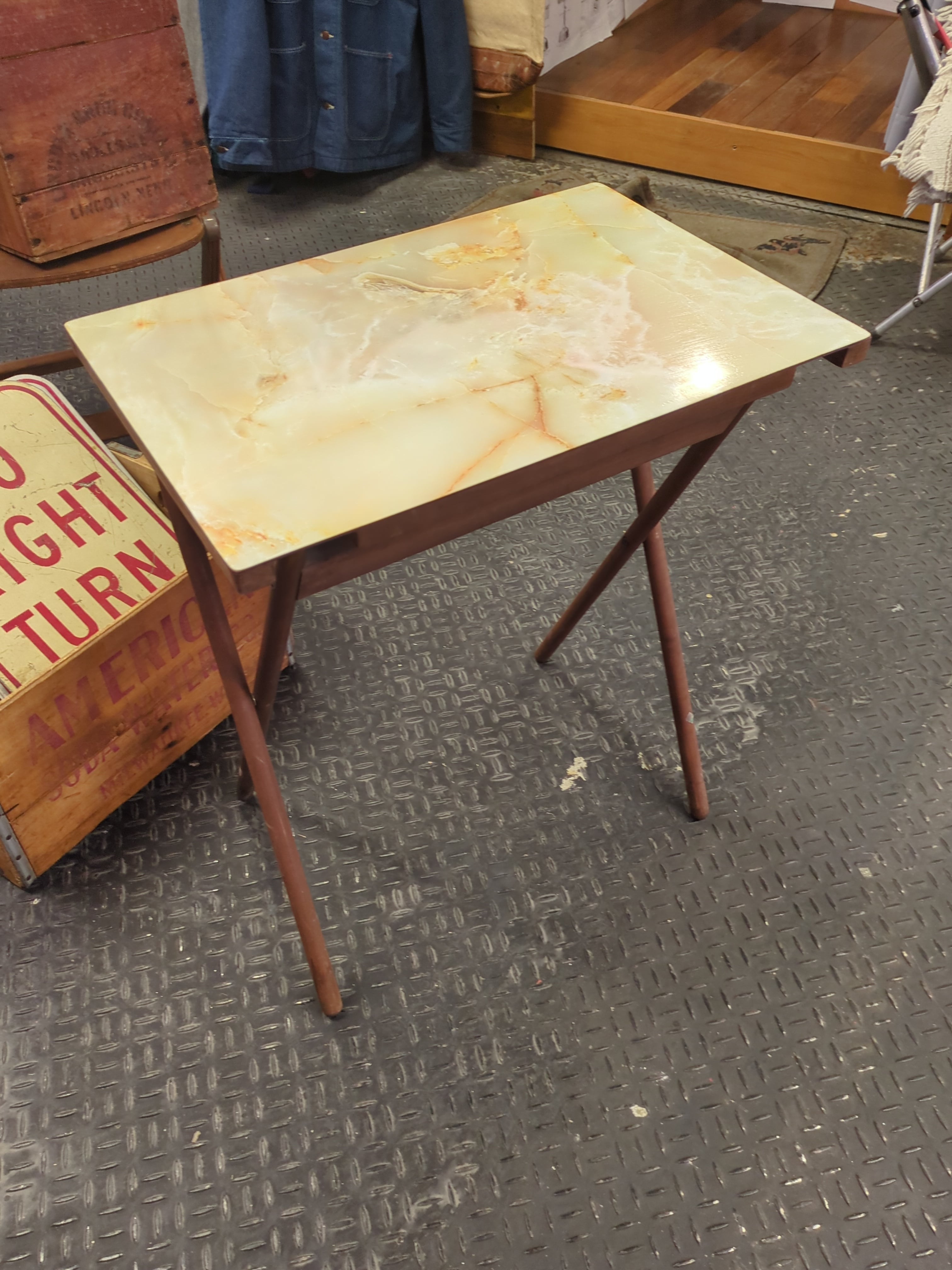 Vintage WoodTable Stand SideTable USA Antique 雰囲気抜群 ビンテージ ウッド フォールディングテーブル サイドテーブル 大理石調 アンティーク アメリカンビンテージ
