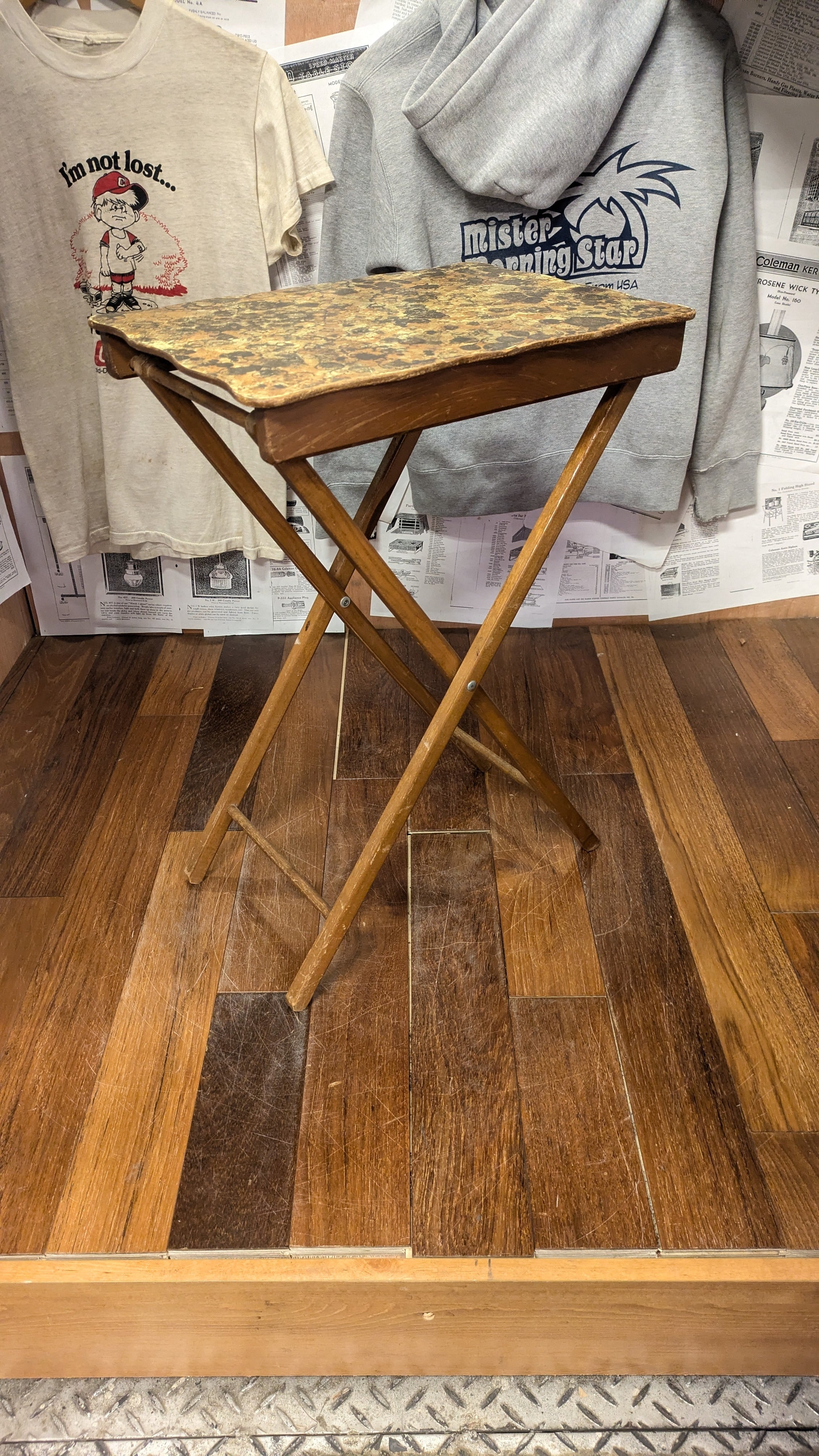 Vintage Wood mini Table Stand SideTable USA Antique ビンテージ ウッド フォールディングテーブル サイドテーブル ミニ 木製スタンド アンティーク アメリカンビンテージ