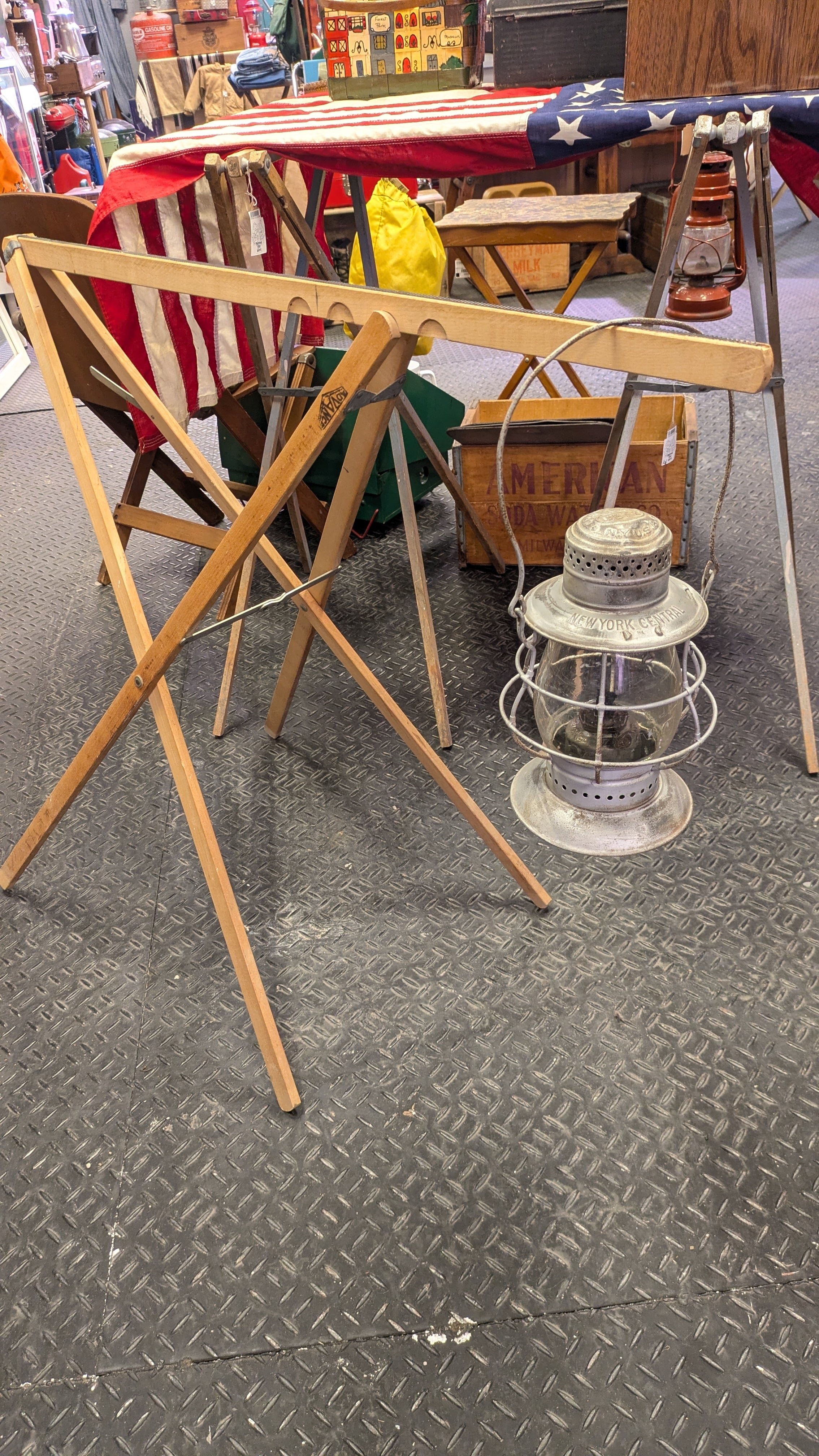 アメリカにて買い付けた貴重な木製フォールディングスタンドです。