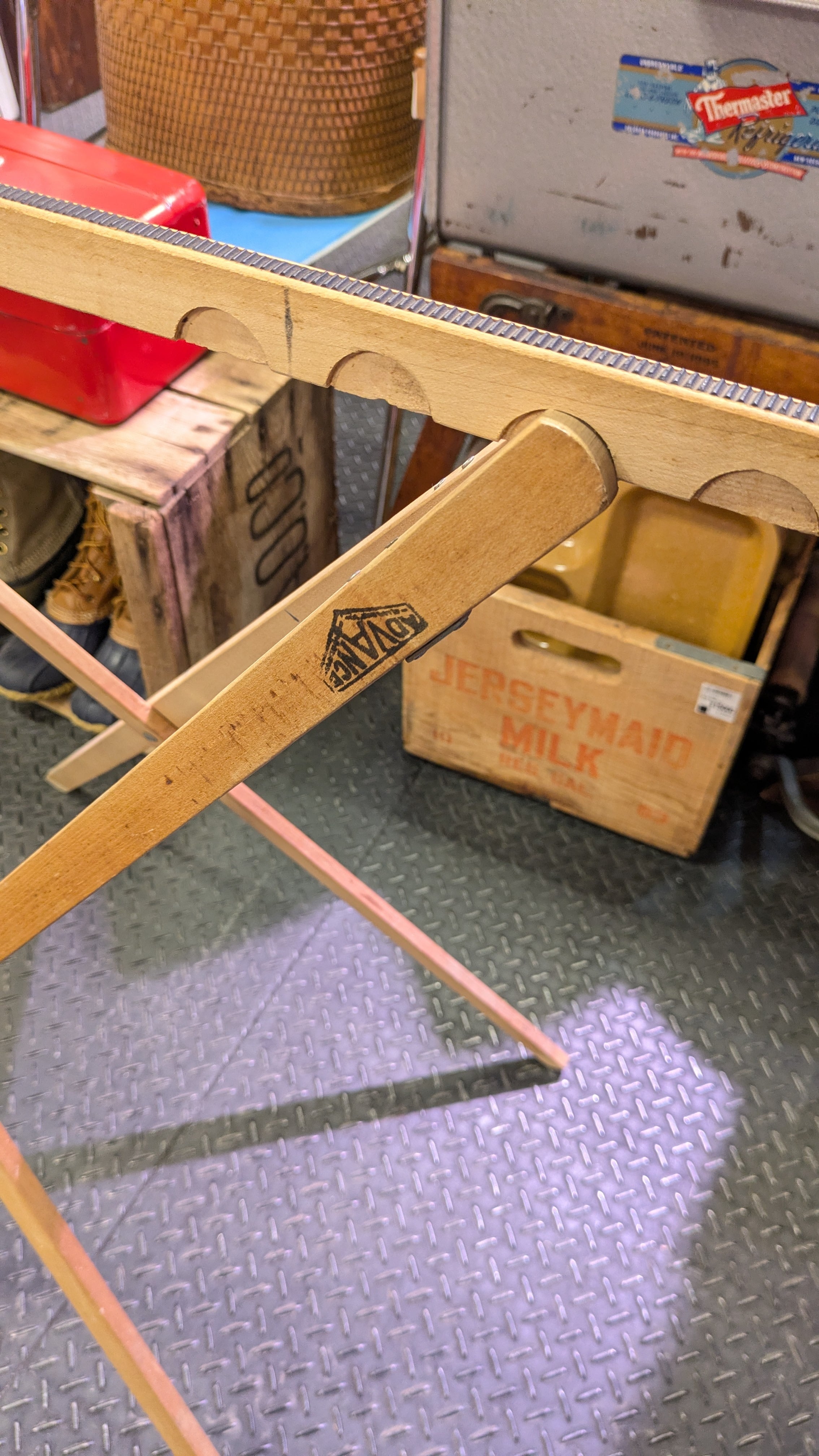 Vintage ADVANCE Wood Folding Trestles Stand Antique Camping USA Furniture ビンテージ 木製 トレッスル 架台 ウマ フォールディング アンティーク アメリカ製 スタンド 店舗什器