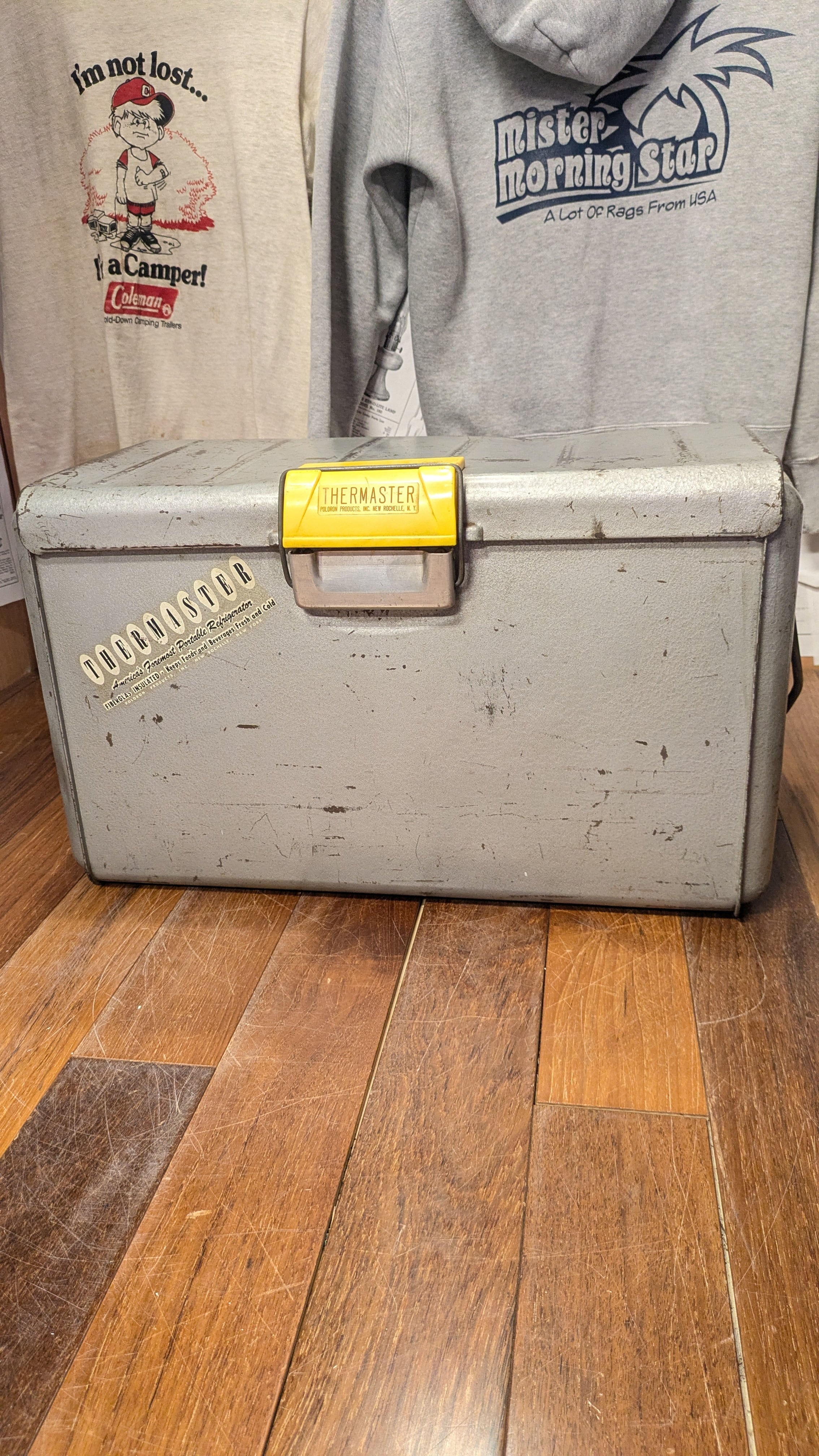 Vintage Thermaster CoolerBox SilverxYellow vintagecooler ビンテージ サーマスター クーラーボックス ビンテージキャンプギア メタルクーラー