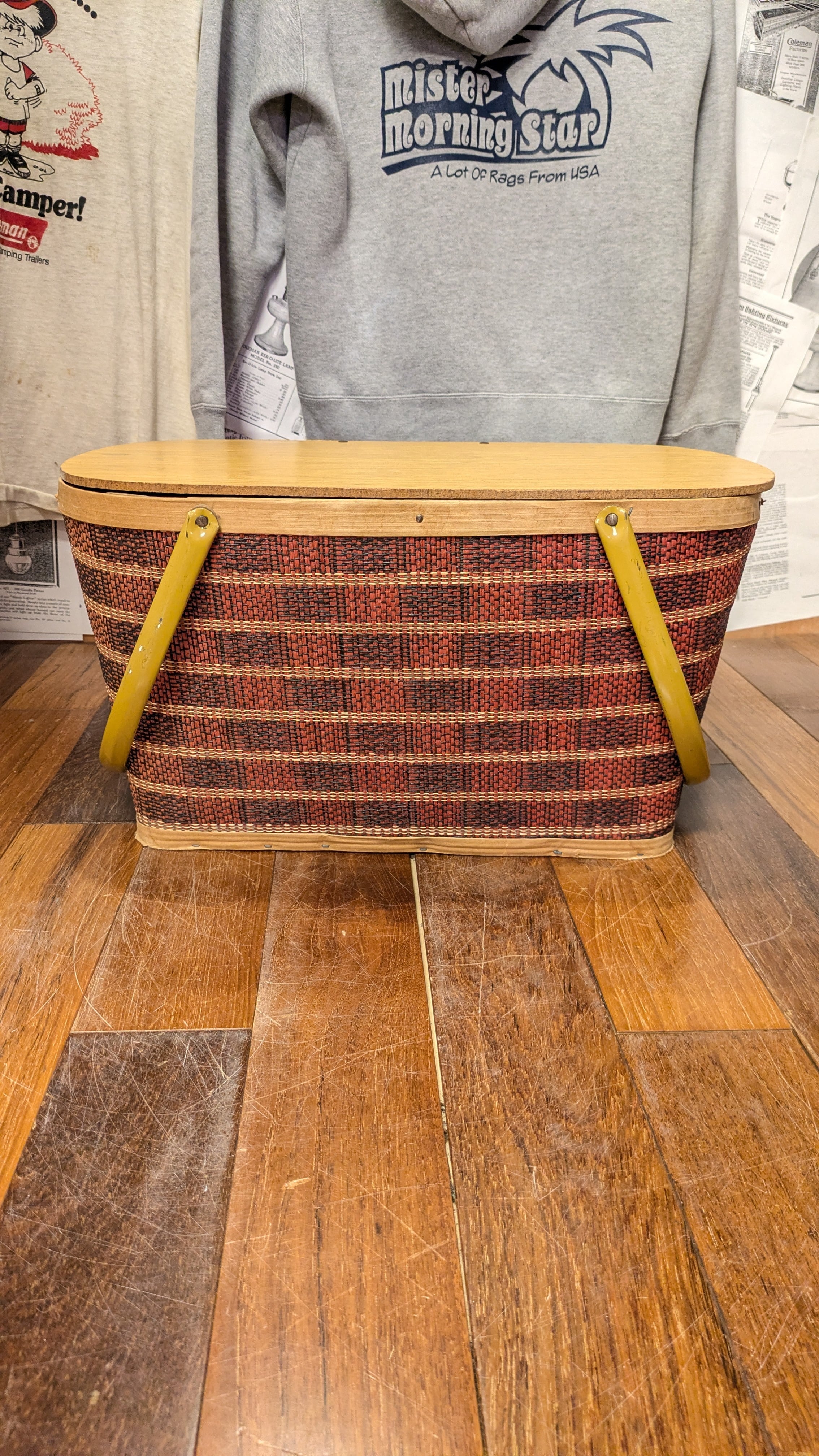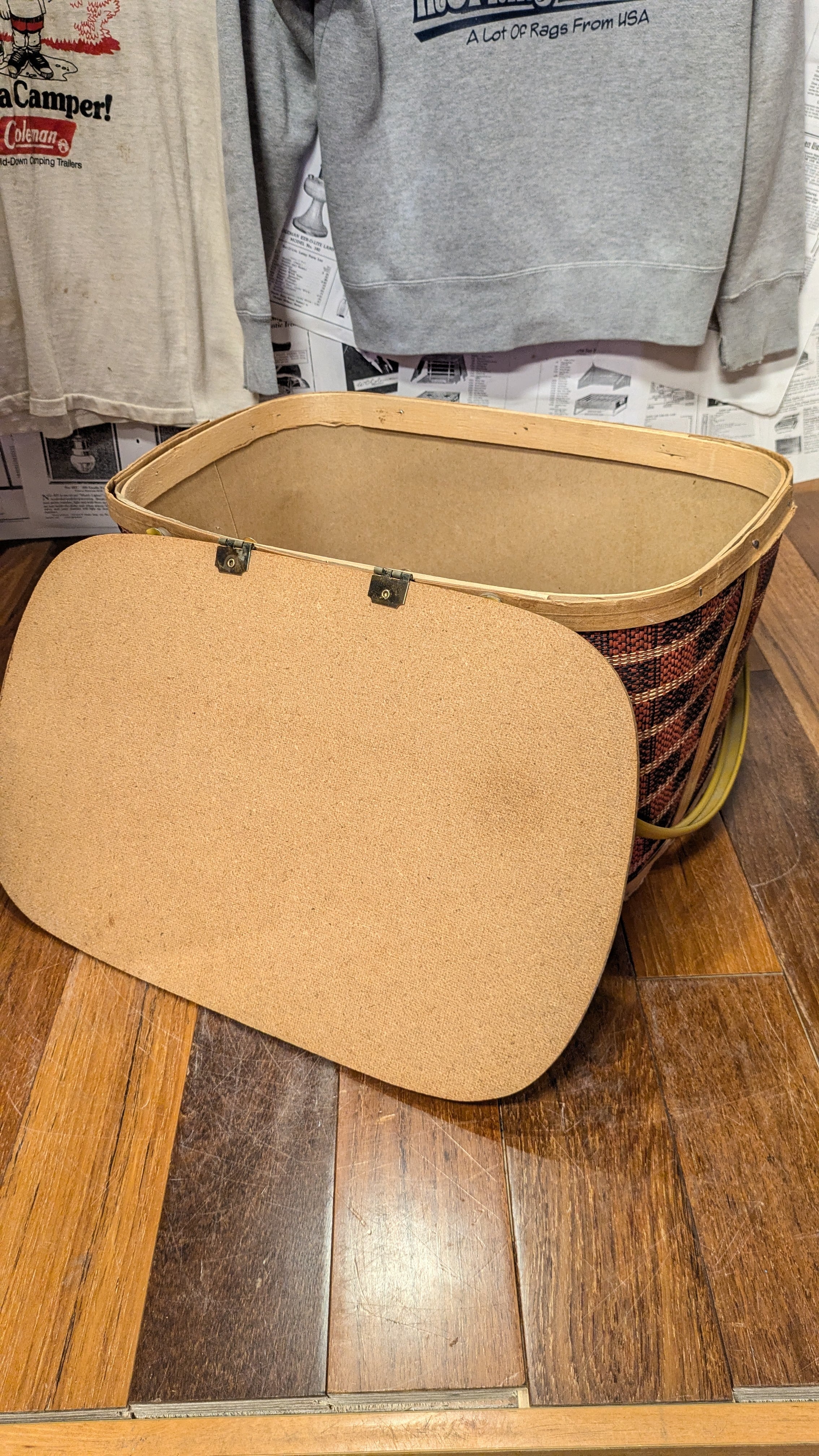 Vintage PicnicBasket StorageBox Antique vintagecamping CheckPattern ビンテージ ピクニックバスケット 収納ボックス チェック柄 籠 バスケット アメリカ ビンテージキャンプ 希少サイズ