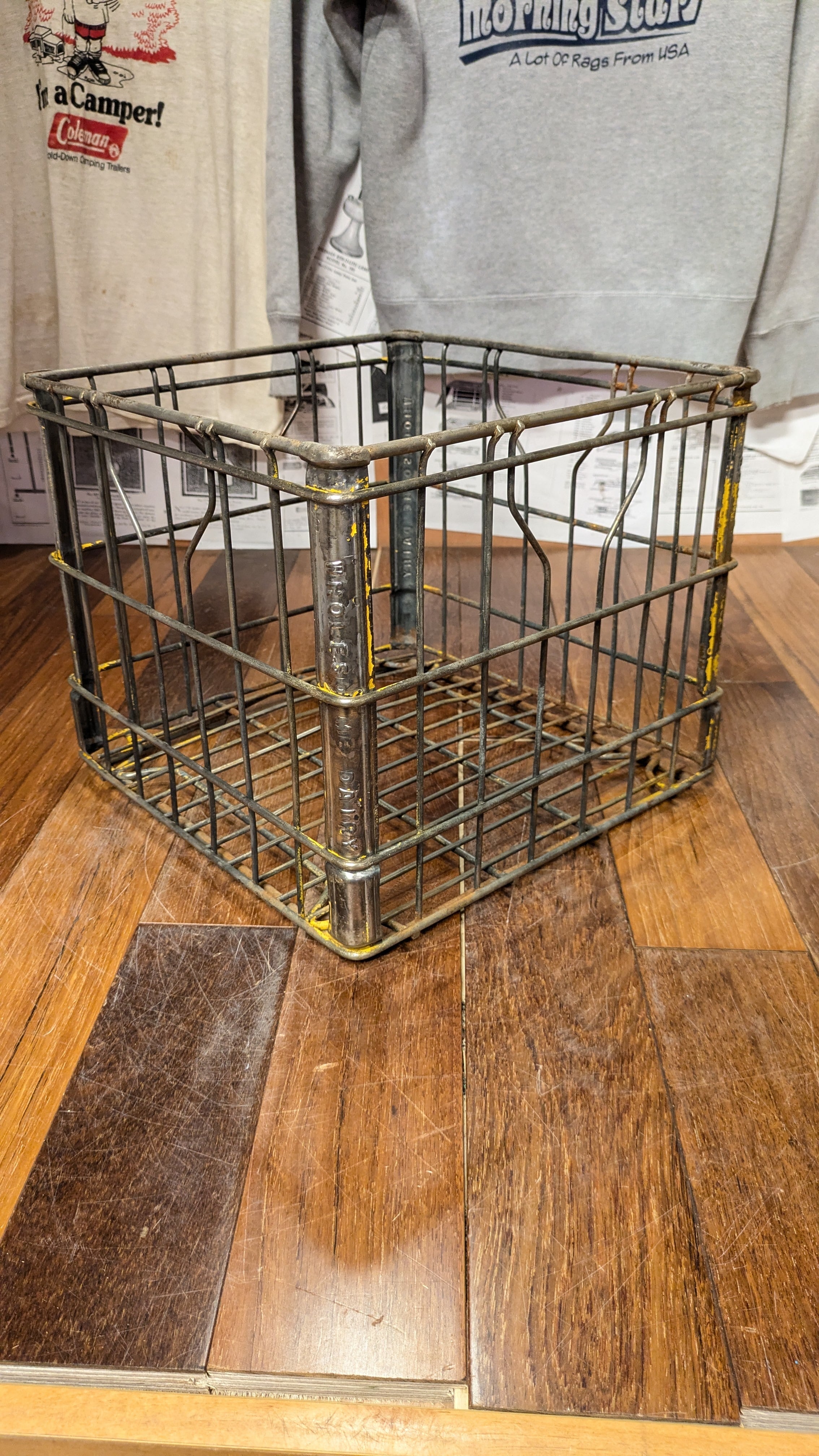 Vintage Wholes Me Dairy WireCrate StorageBox Antique Container MetalBox Square ビンテージ ワイヤークレート 収納ボックス ギアボックス 運搬 クレート スクエア