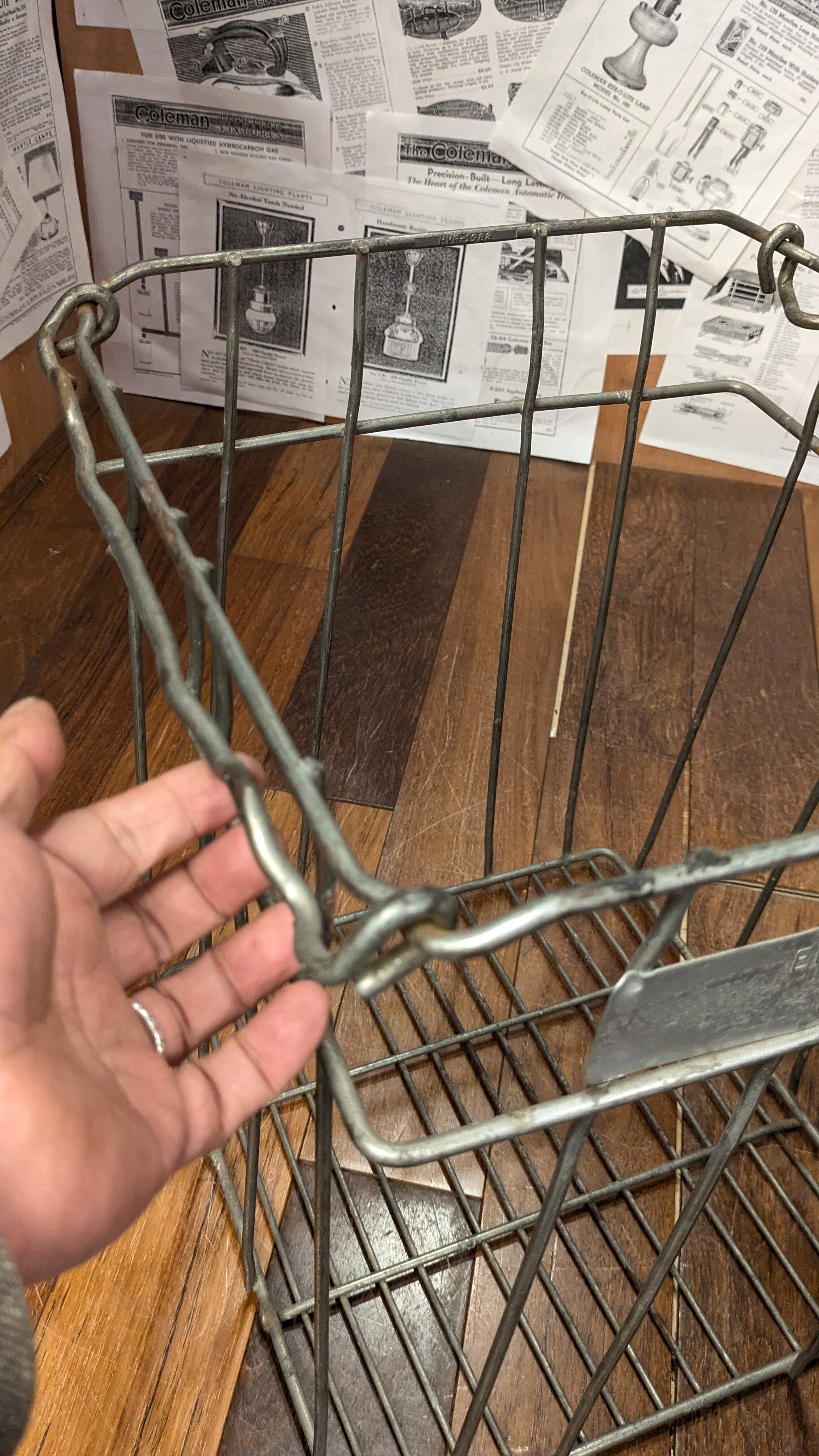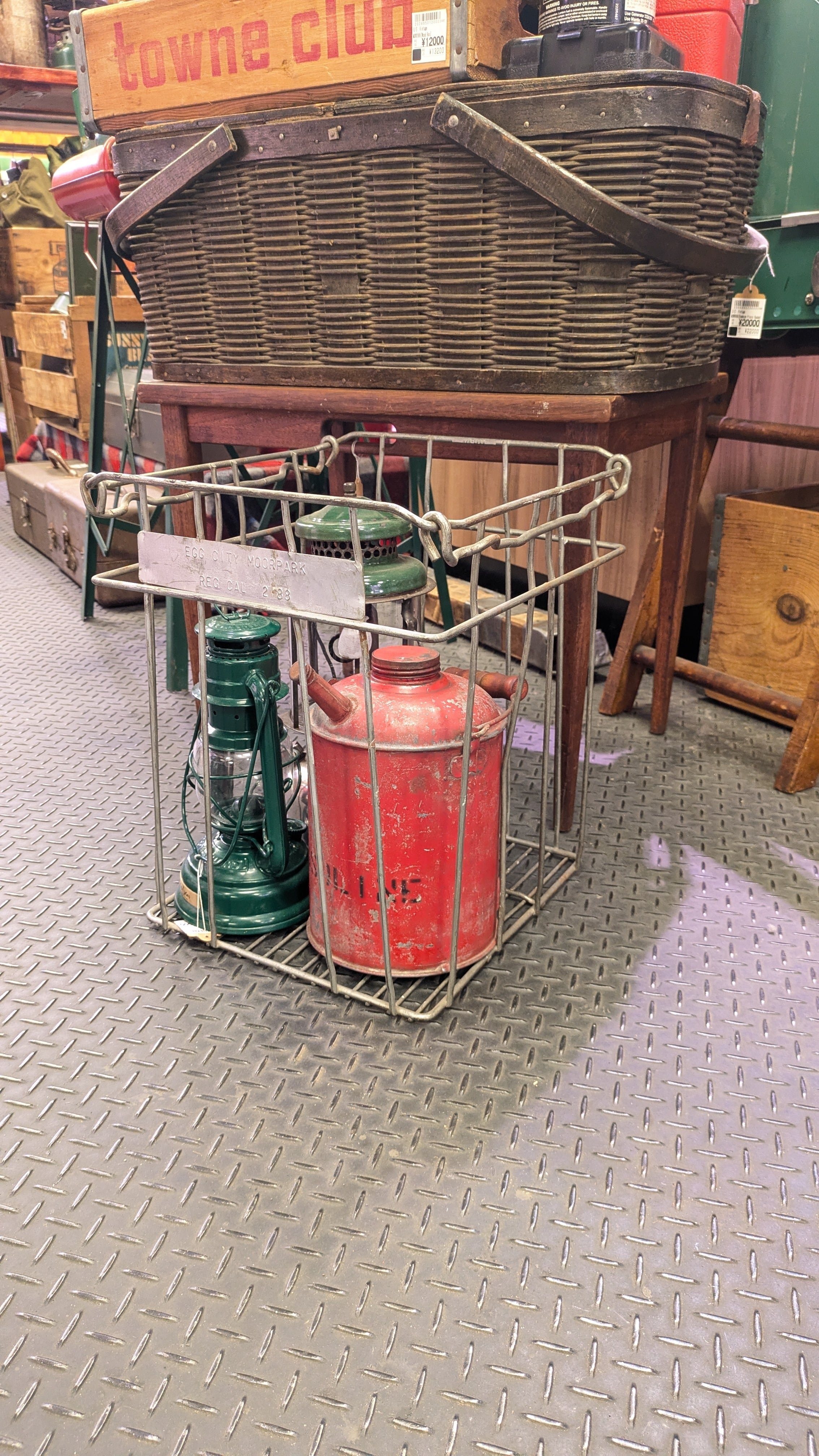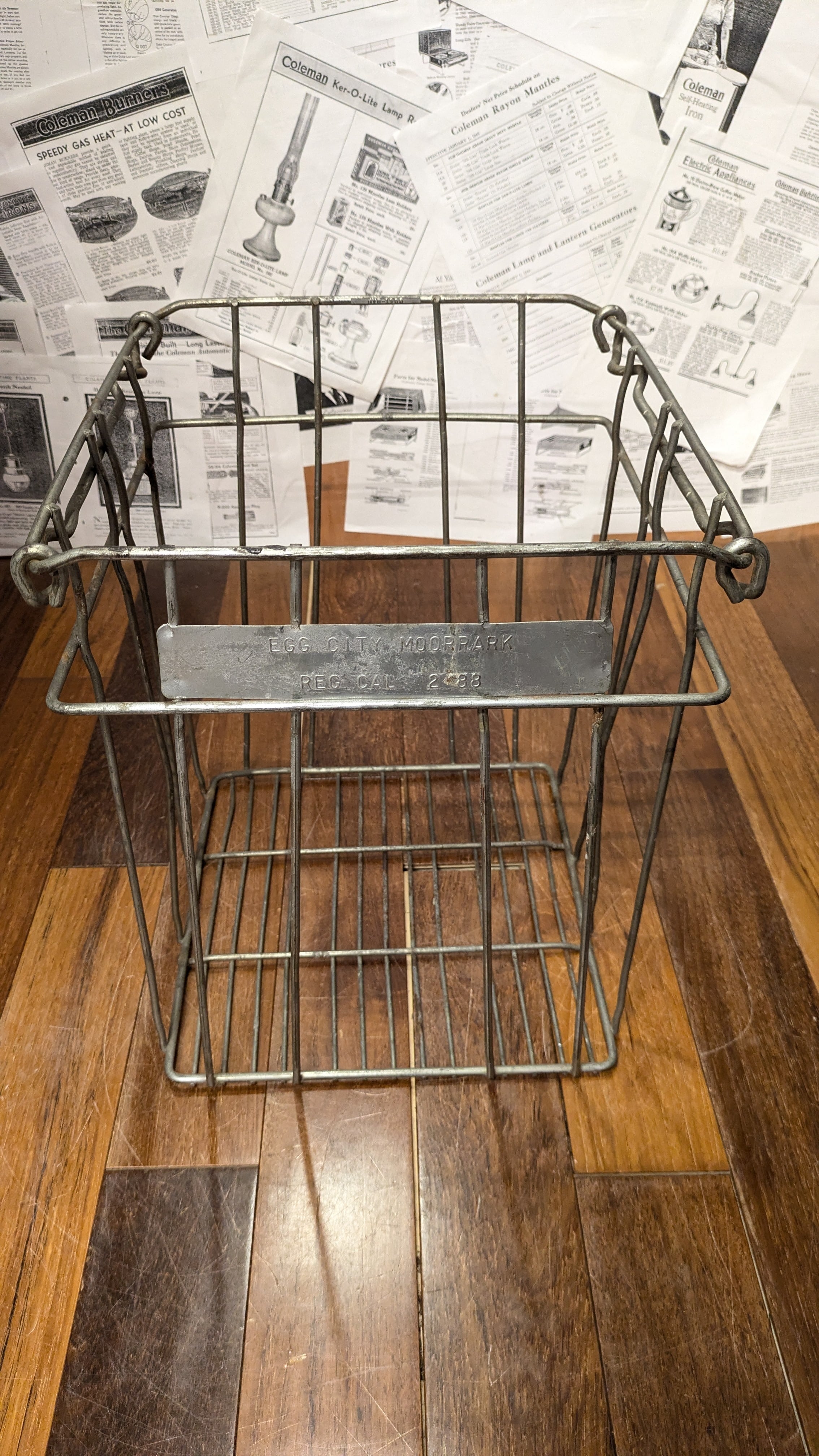 80's Vintage Egg City Moorpark WireCrate StorageBox Antique Container MetalBox ビンテージ ワイヤークレート 縦型 収納ボックス 薪入れ 運搬 クレート