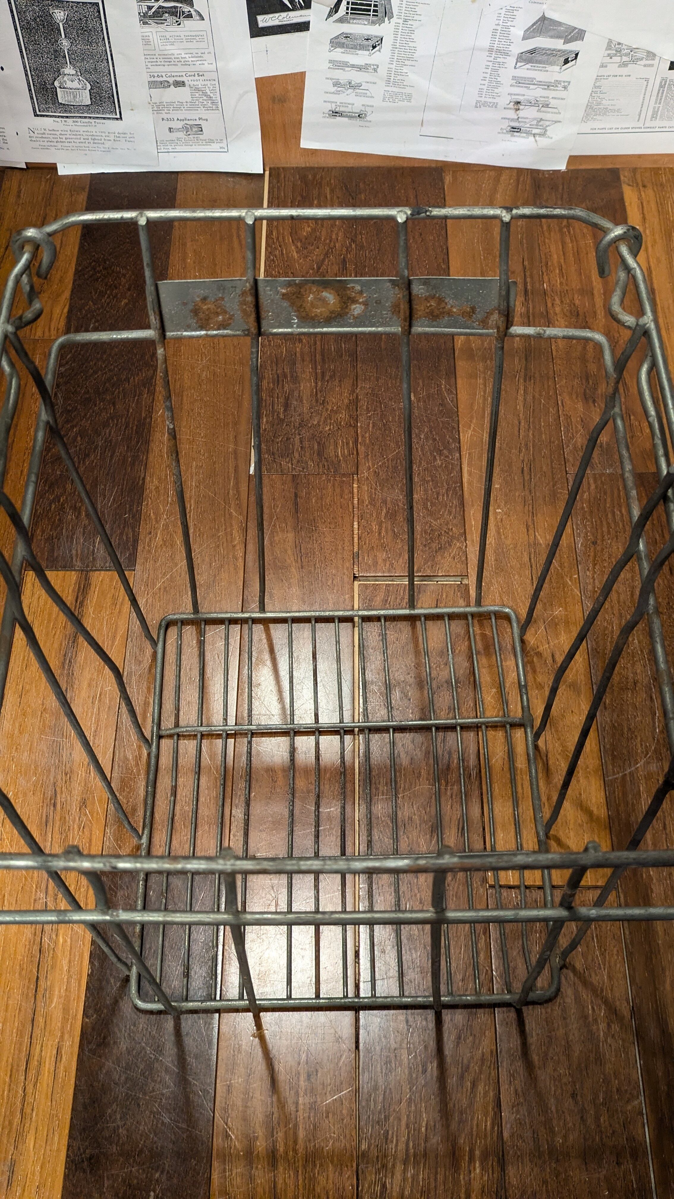 アメリカにて買い付けた薪入れやギアボックスに最適なビンテージワイヤークレートです。