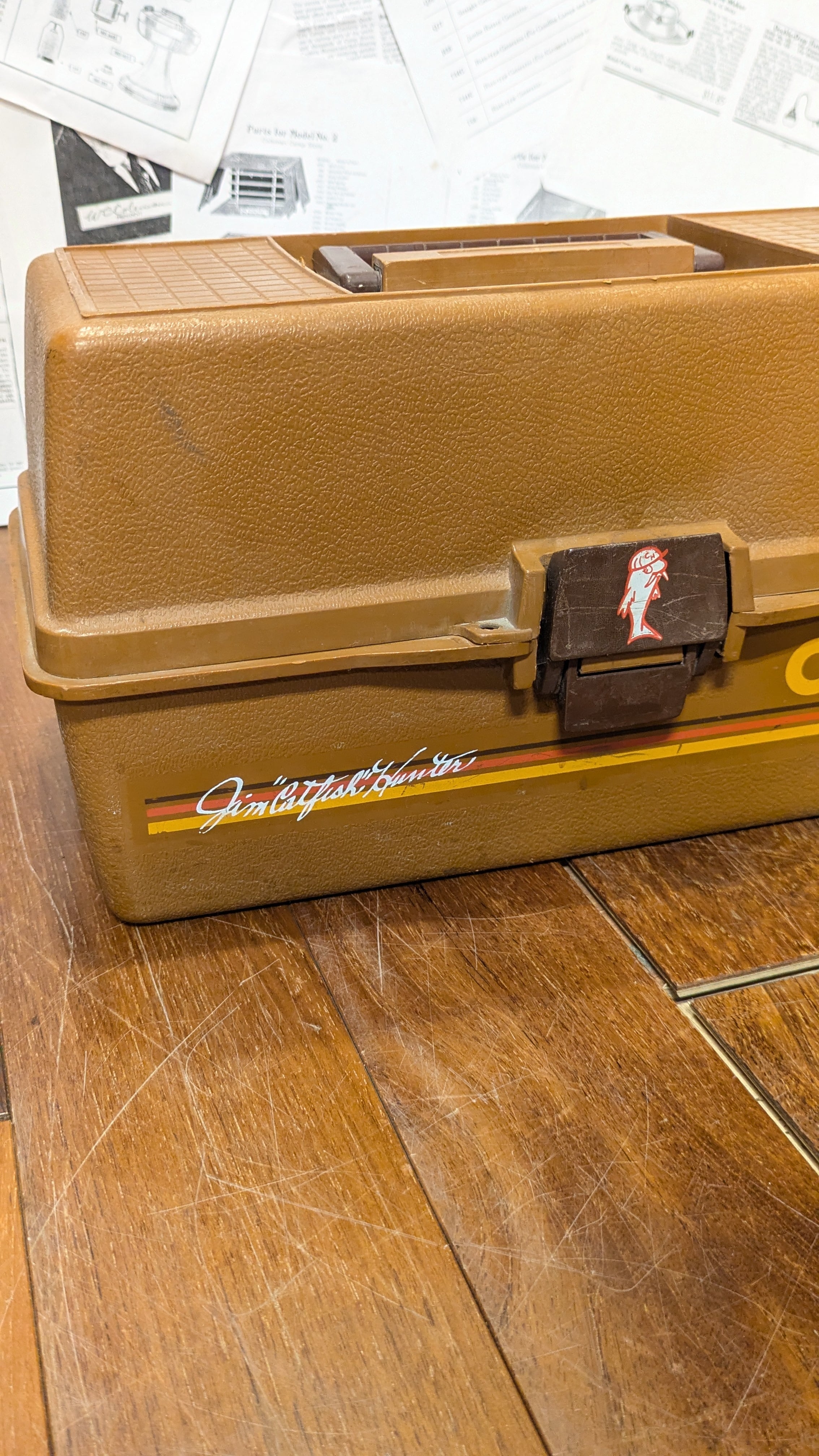 Vintage OLDPAL Jim Catfish Hunter TackleBox ToolBox PartsBox ビンテージ タックルボックス ツールボックス ギアボックス 道具入れ USA ビンテージキャンプギア