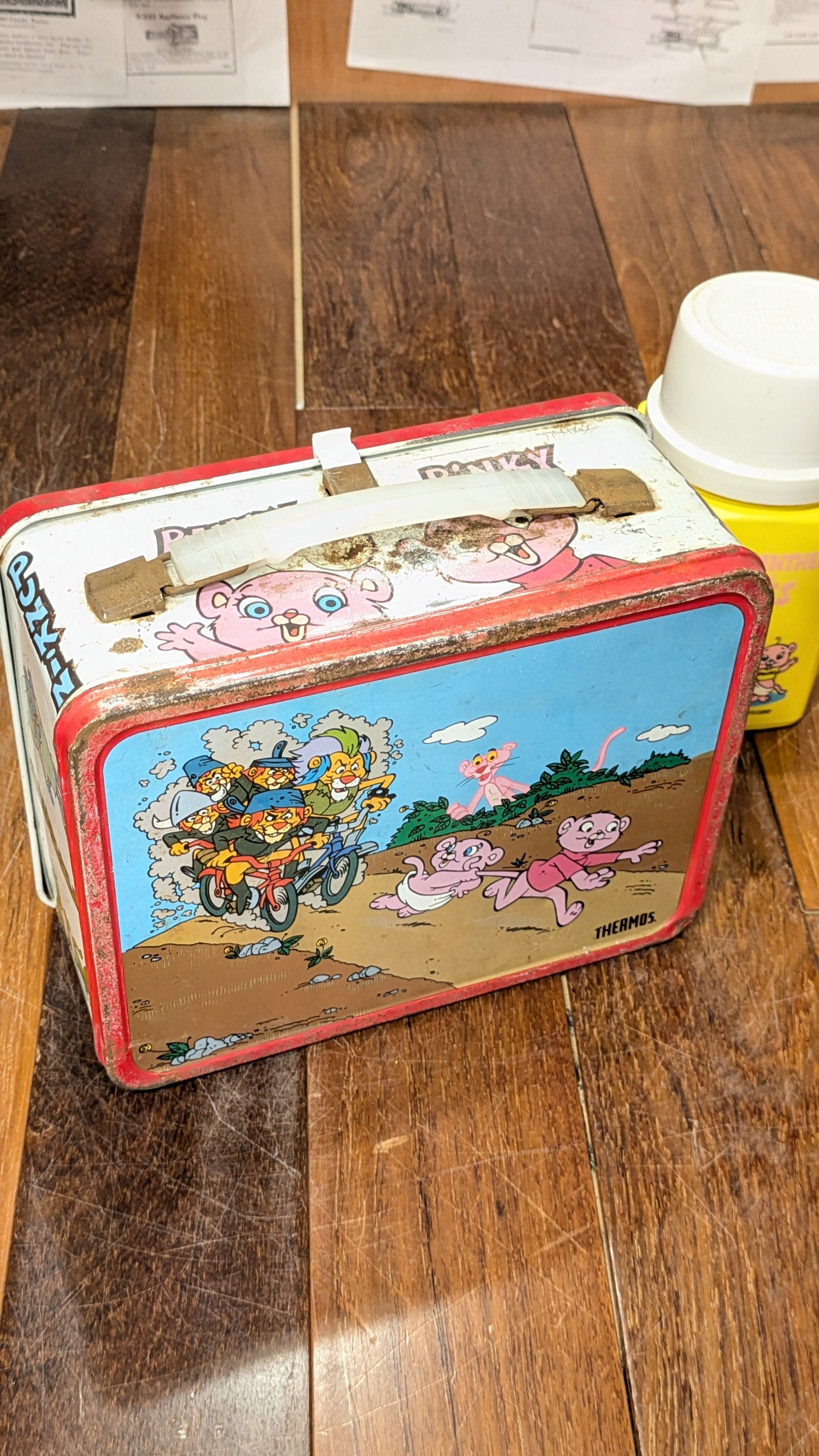 Vintage Thermos PinkPanther&Sons Lunchbox Tincan SpiceBox ビンテージ サーモス ランチボックス ピンクパンサー キャンプ スパイスボックス 小物入れ 缶バスケット 水筒付き