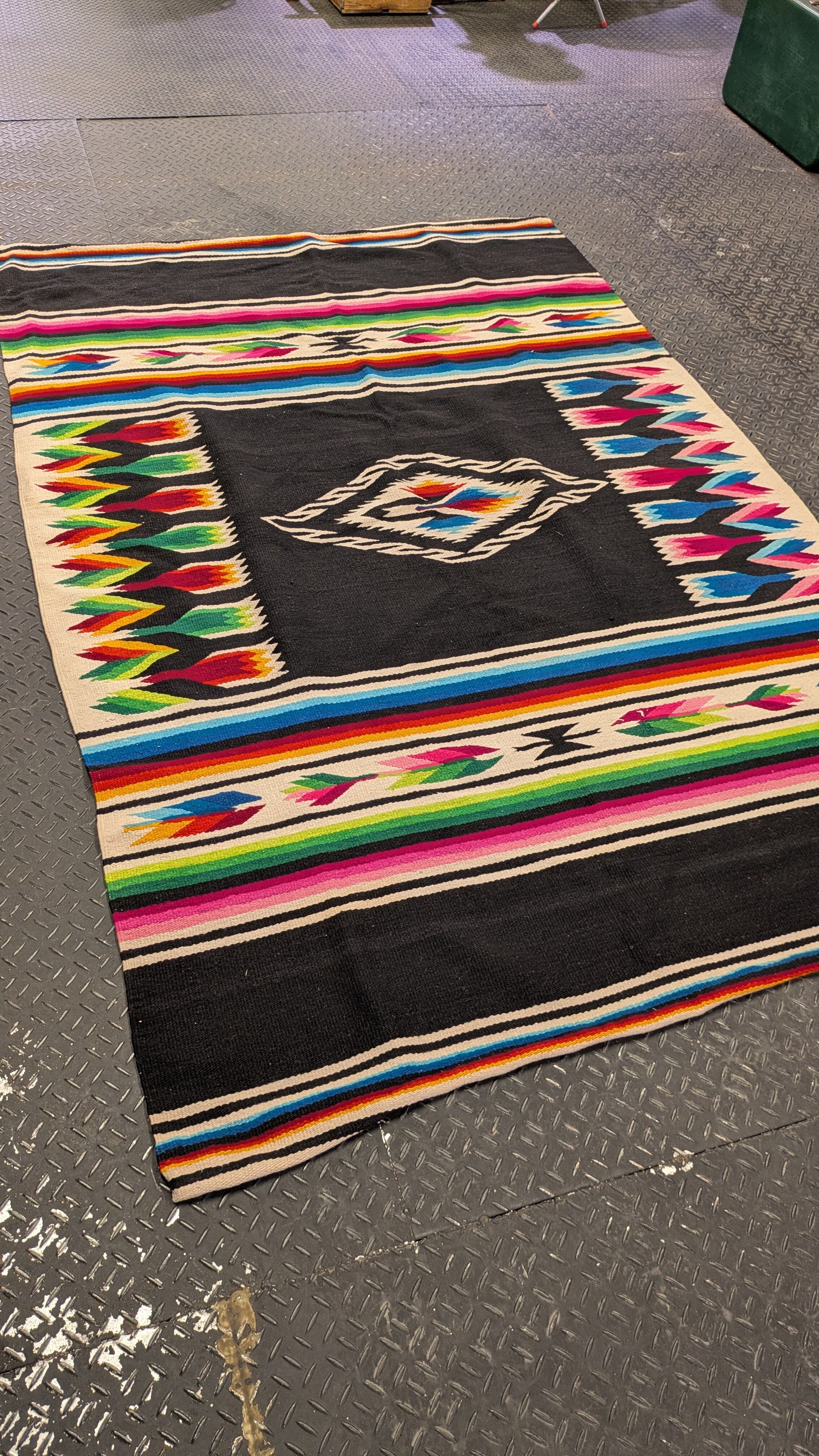 Vintage WoolRug Native Rug Black Big 215x141cm ビンテージ ウールラグ ネイティブ柄 キャンプラグ 大判