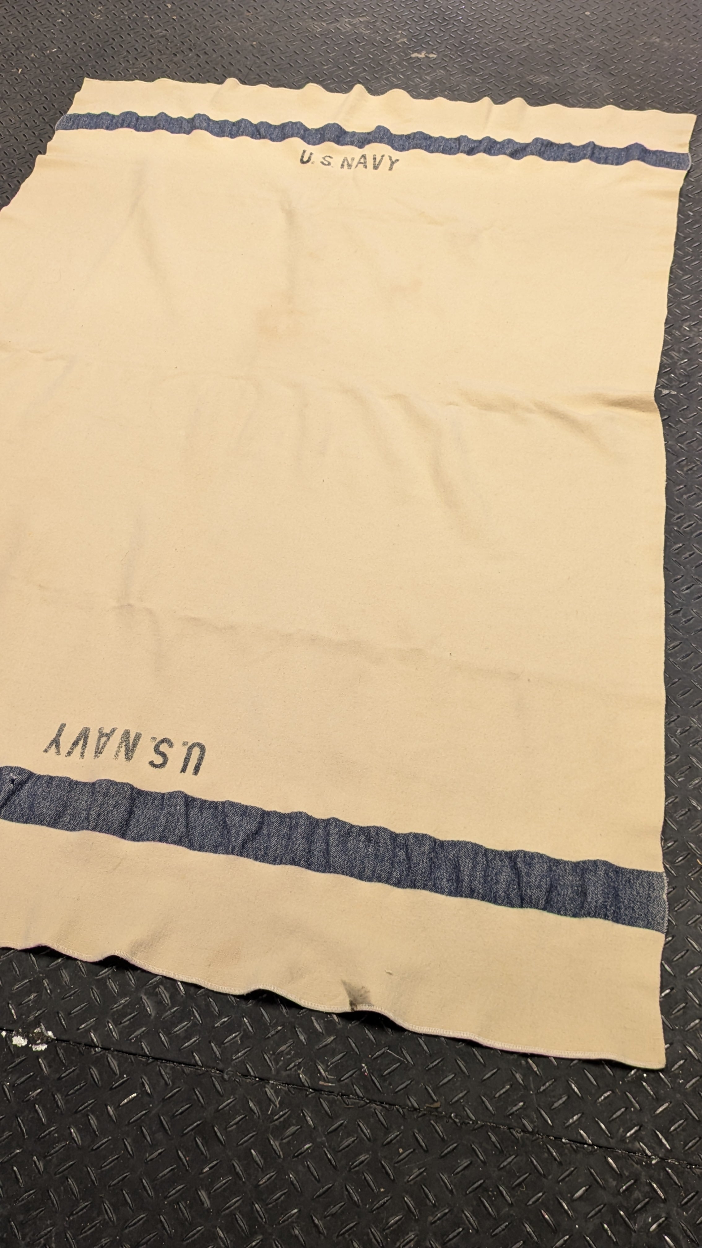 独特の文字体で有名なUS NAVYのミリタリーブランケット。