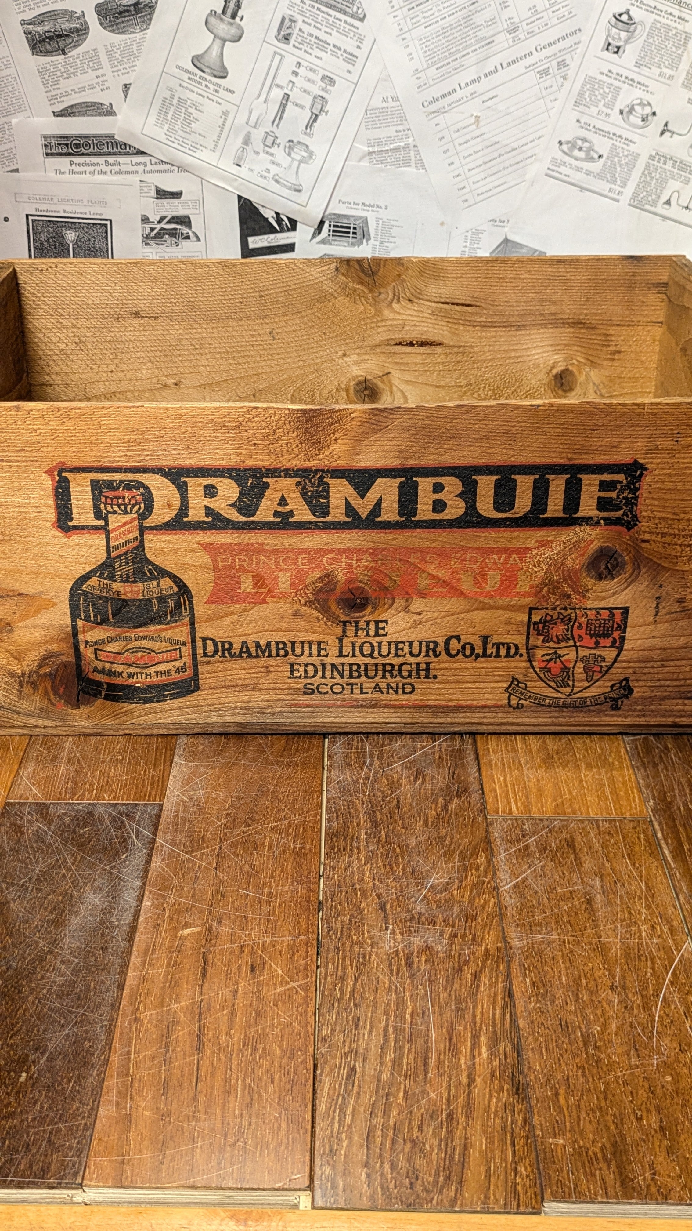 Vintage DRAMBUIE Crate WoodBox StorageBox ビンテージ ドランブイ ウッドボックス 木製 木箱 収納ボックス ギアボックス キャンプギア クレート コンテナ